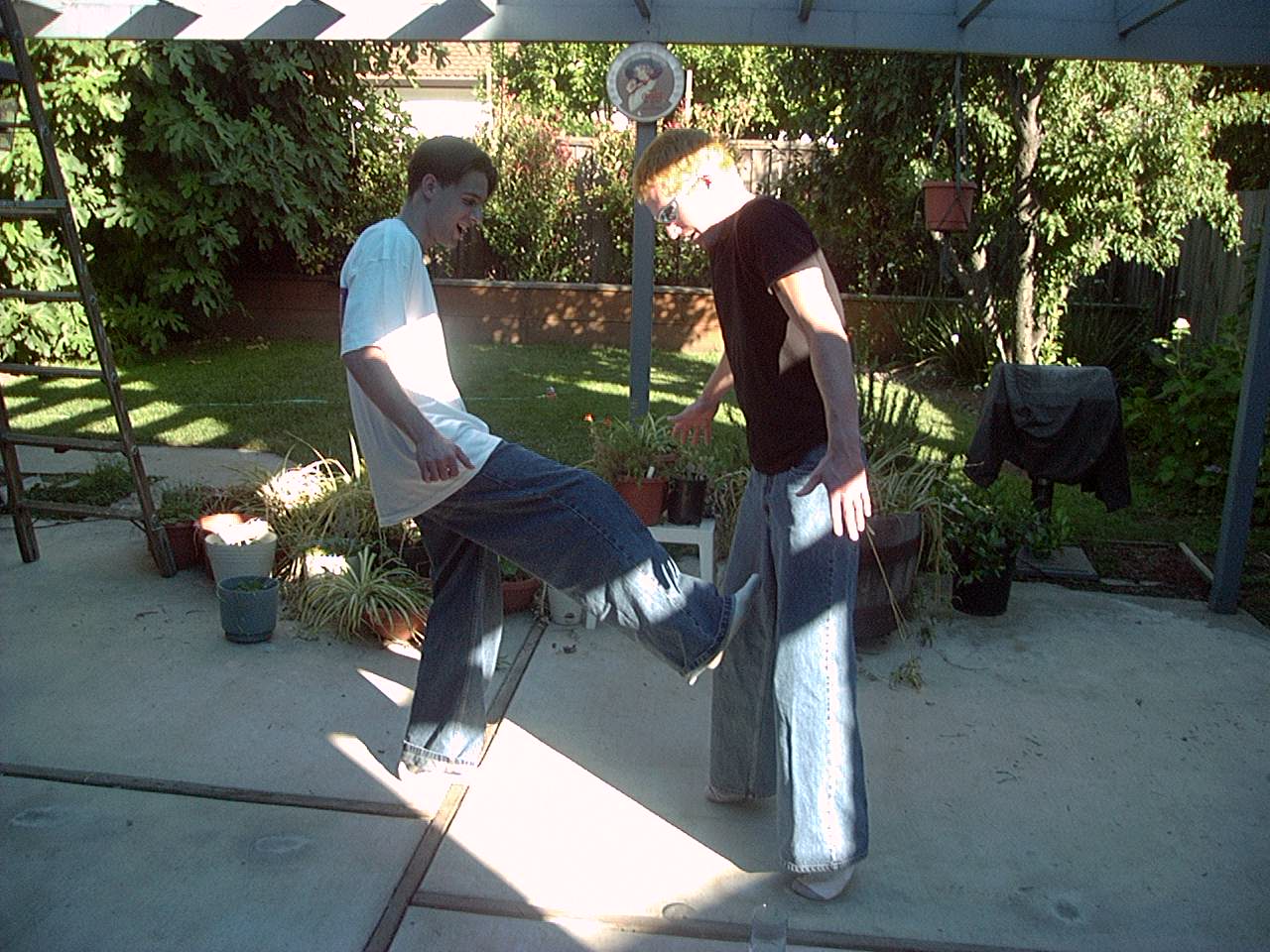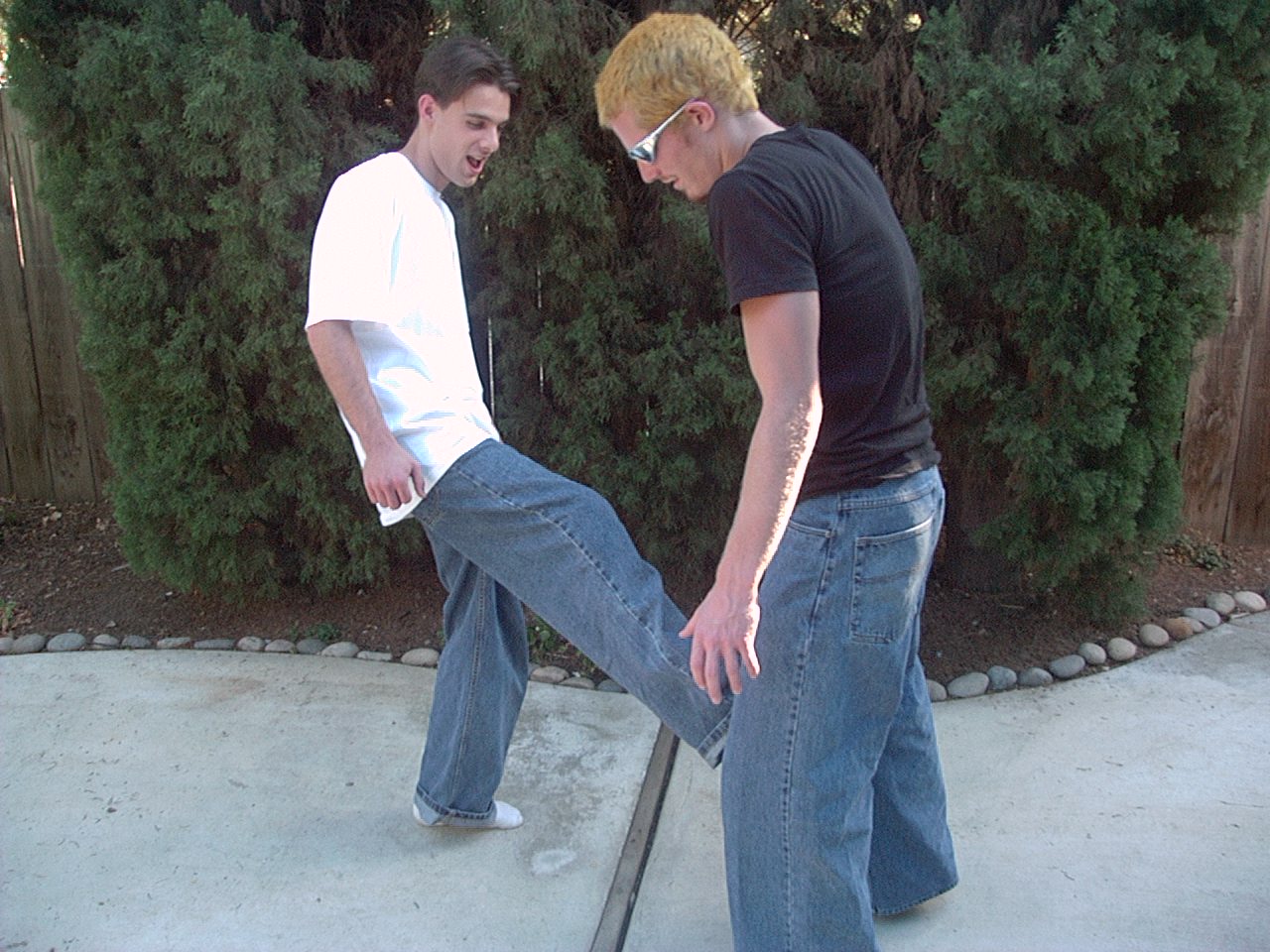 For some reason we thought it would be hillarious to pose pictures of us kicking eachother in the nuts. Also, somehow muscle flexing and feats of strength became a thing as well.