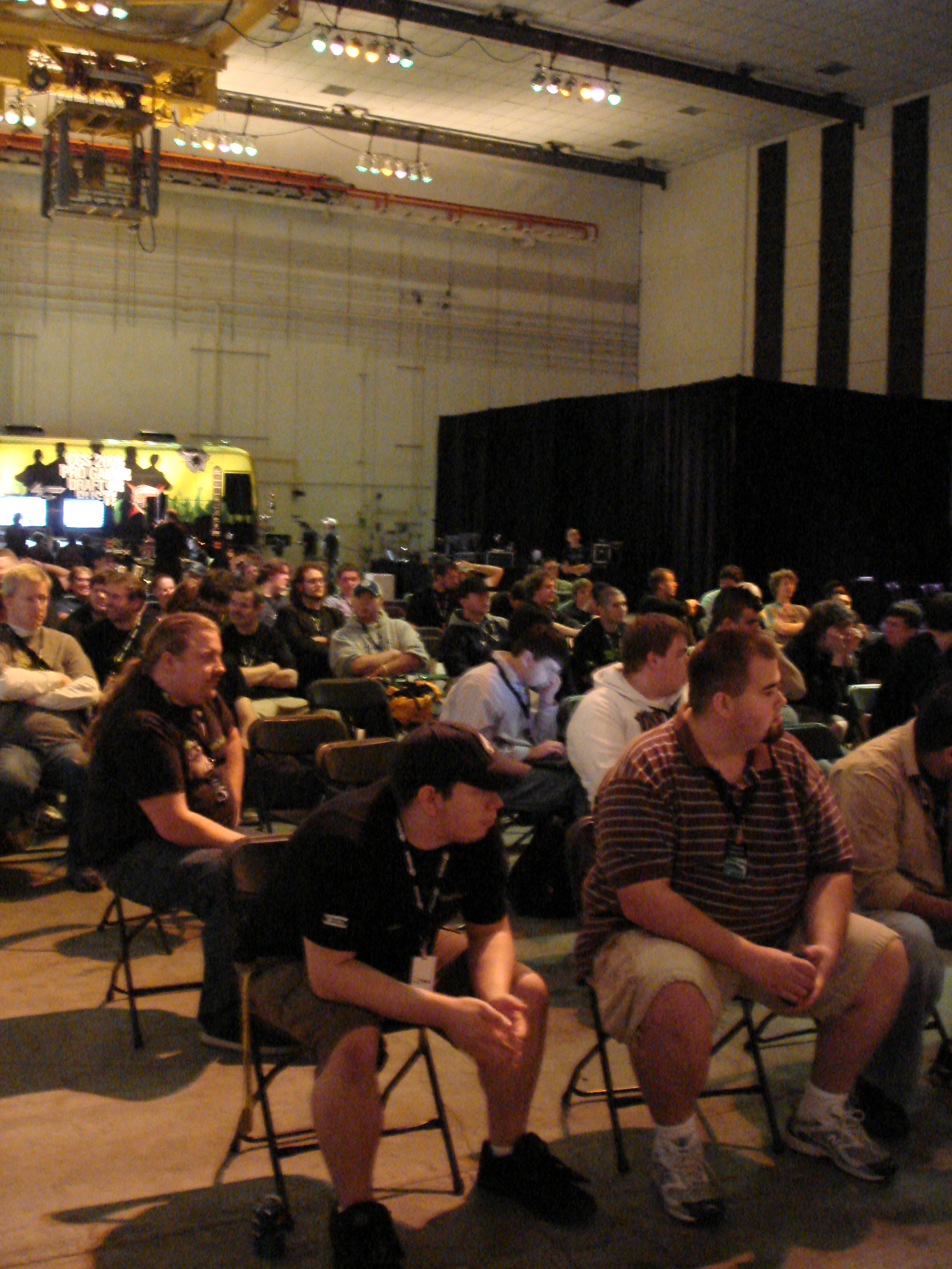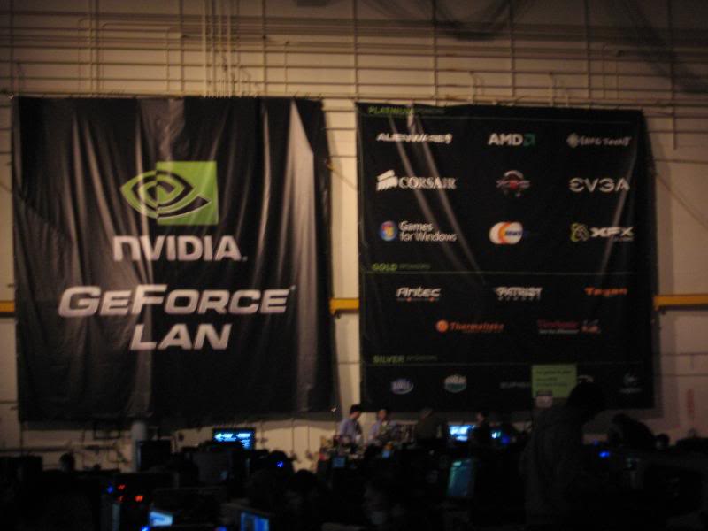 GeForce LAN 4 was set for November 16th - 18th 2007 and would take place inside a giant warehouse in Alameda near where the USS Hornet is docked. The event would host a total of 421 gamers and featured a variety of contests, tournaments, presentations; living up to the great reputation that previous GeForce LANs were known for. The event itself was divident into two main areas. The first huge room houses the BYOC area, the sponsor tables and the tournament area. The second huge room featured a mainstage stage for events and contests, a special "club SLI" area, a giant XFX bus, an area for serving food and some other sections where professional overclockers and such would do demonstrations.