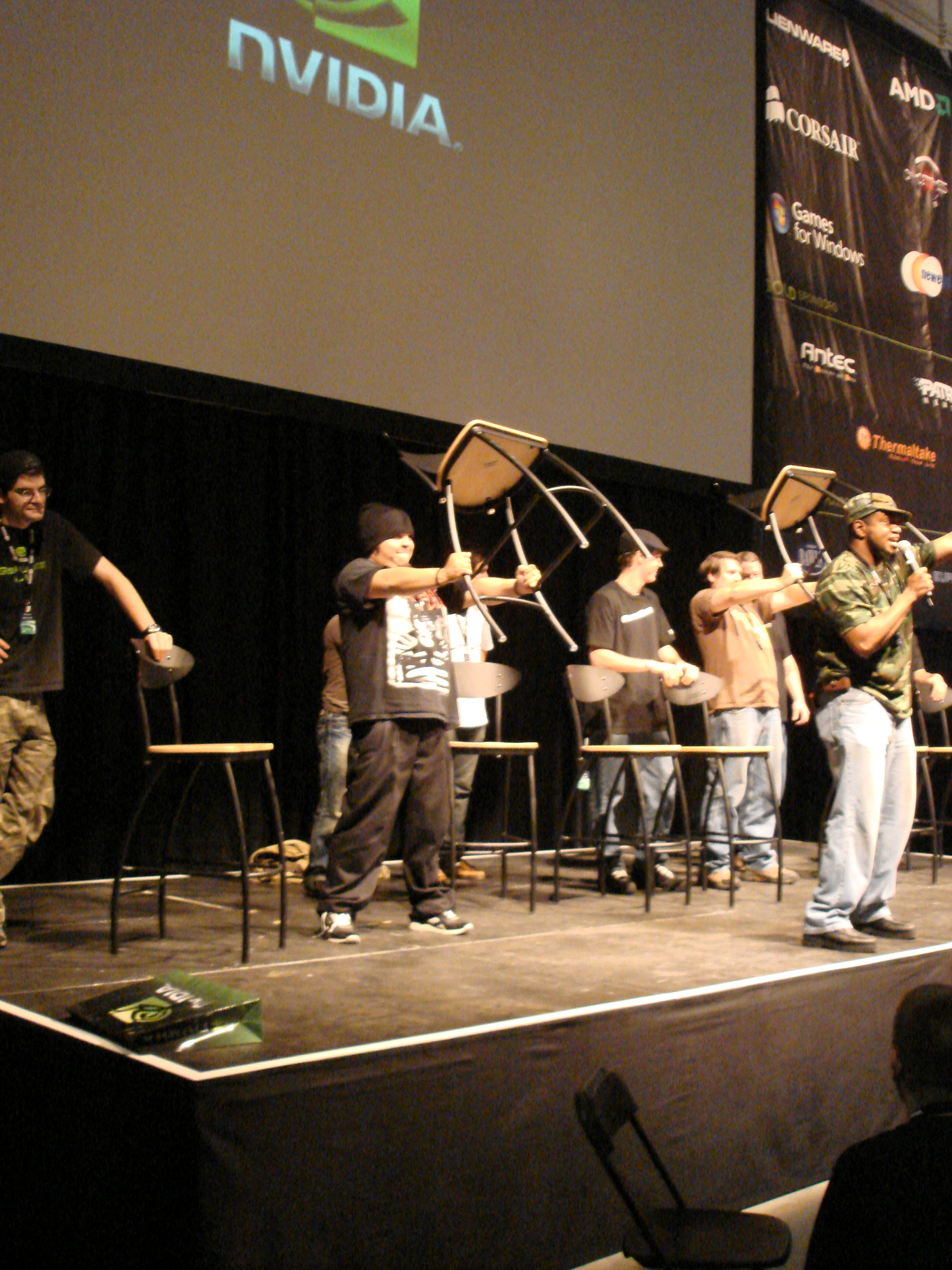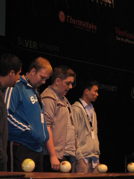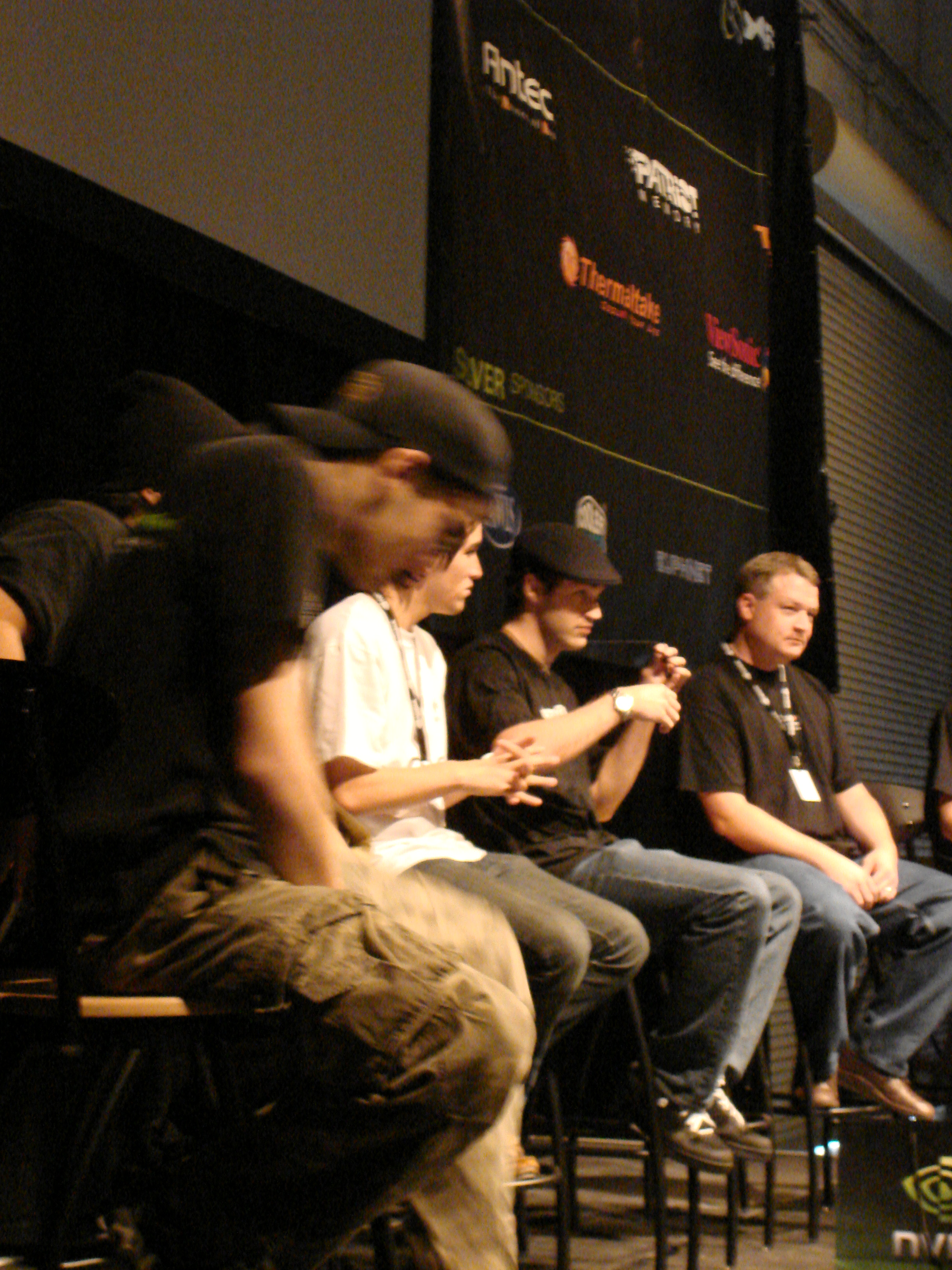 We were starting to get tired and there seemed to be no end in sight to this stalemate. It was then that the Antec booth announced it was going to start it’s prize raffle and you must be present to win. 12inch nick’s friend Mofo, who was on my team started to get antsy. He started looking at me and I think he even asked at one point if he could quit the tournament and go to the raffle. As more of a test than anything else I said something like “do whatever you want.” It was admittedly not the most stellar move in team leadership on my part. I should have yelled at him to shut up and keep playing, but instead I held onto the hope that he would choose to sacrifice the potential of winning prizes to instead support his fellow TMC comrades in their fight for tournament dominance. As it turned out, the lure of free prizes proved to be too much; he bolted out of his seat and headed for the raffle. Needless to say, my Blue team lost, and also Mofo would not be in TMC much longer.