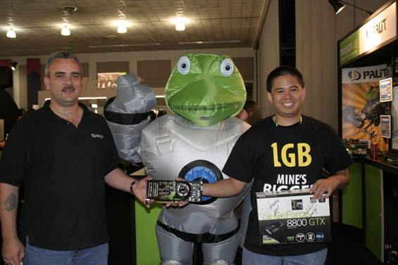 They presented their cards to EVGA who was very interested. From what I remember the guy at the EVGA booth had to find his manager to see what they were allowed to offer them. In the meantime, a company called Palit caught wind of this. Palit was an established brand in Europe but was a newcomer to the American video card market, and anxious to make a name for themselves. They decided to step in and make their own offer on these now famous cards. A bidding war between EVGA and Palit ensued. Quemine was torn as to which offer to take. He came to me regularly during the event and gave me updates on the latest offer and asked for advice on how to maximize the opportunity.