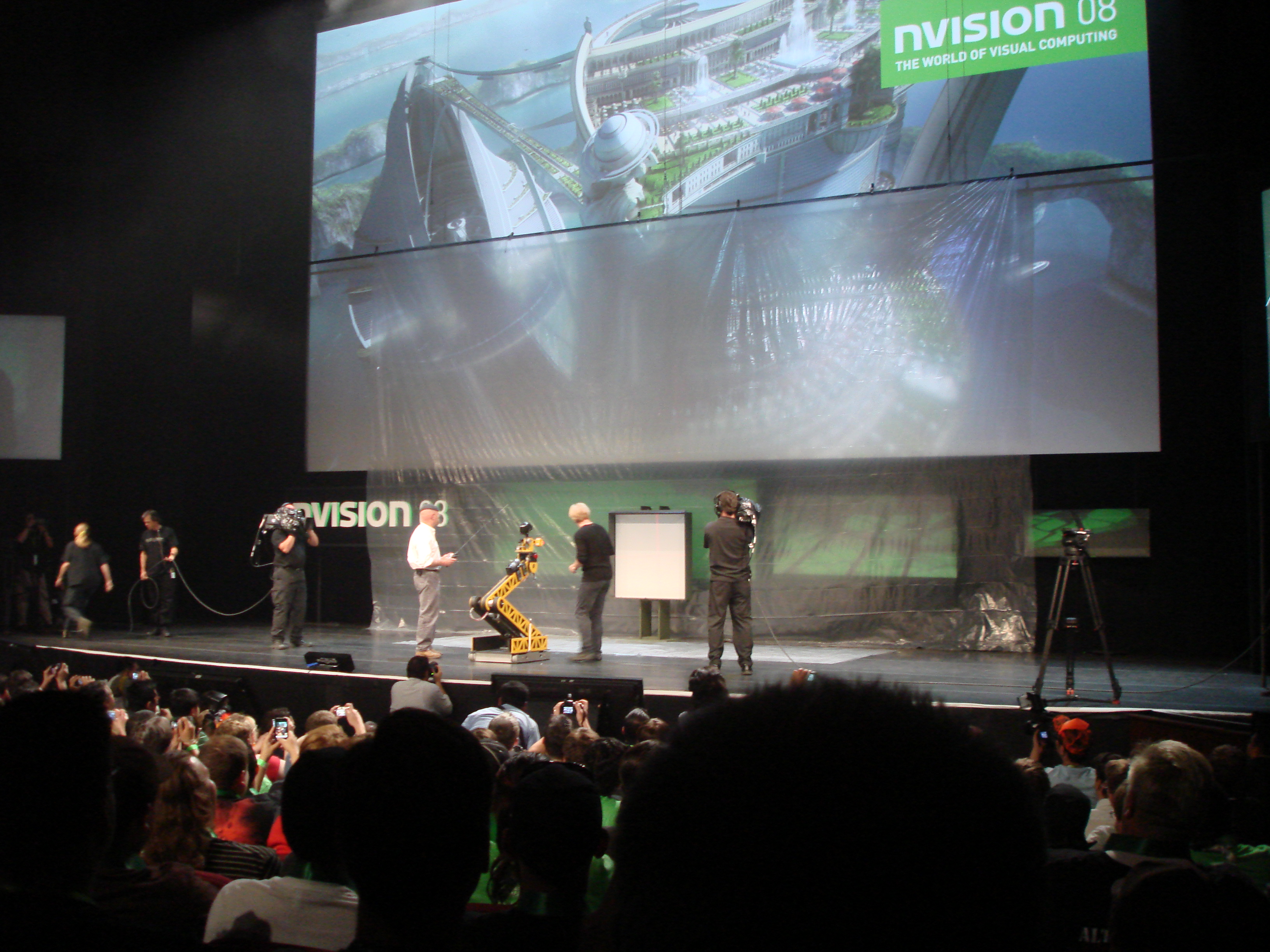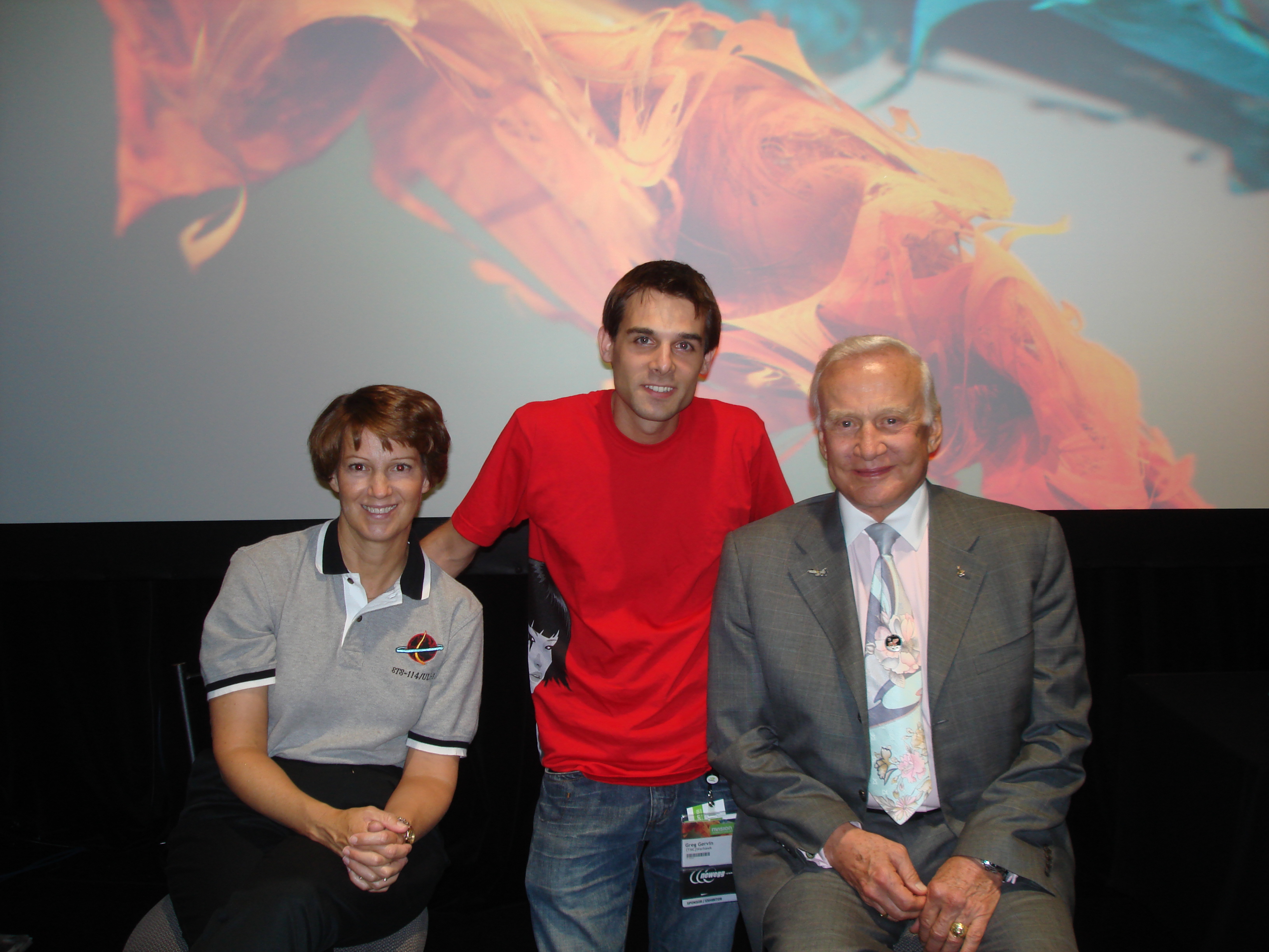 Regarding the whole of Nvision 08, the event itself was huge. It took up all of the San Jose Convention center and nothing like it had ever been seen in the history of LAN events. A huge green carpet led up the walkway to the entrance, and event the fountains in the front of the convention center were spraying Nvidia green water. The tradeshow area of the event was very large and had a variety of vendors. There was a theater area set up to show off various 3D presentations and other tech demos or screenings. One of the screenings was a movie called “Fly Me To the Moon” and they even brought in some actual astronauts to be a part of it, including Buzz Aldrin himself. This was pretty awesome, as it’s not everyday you get to meet someone that walked on the moon and is a genuine part of not only American history, but world history.
