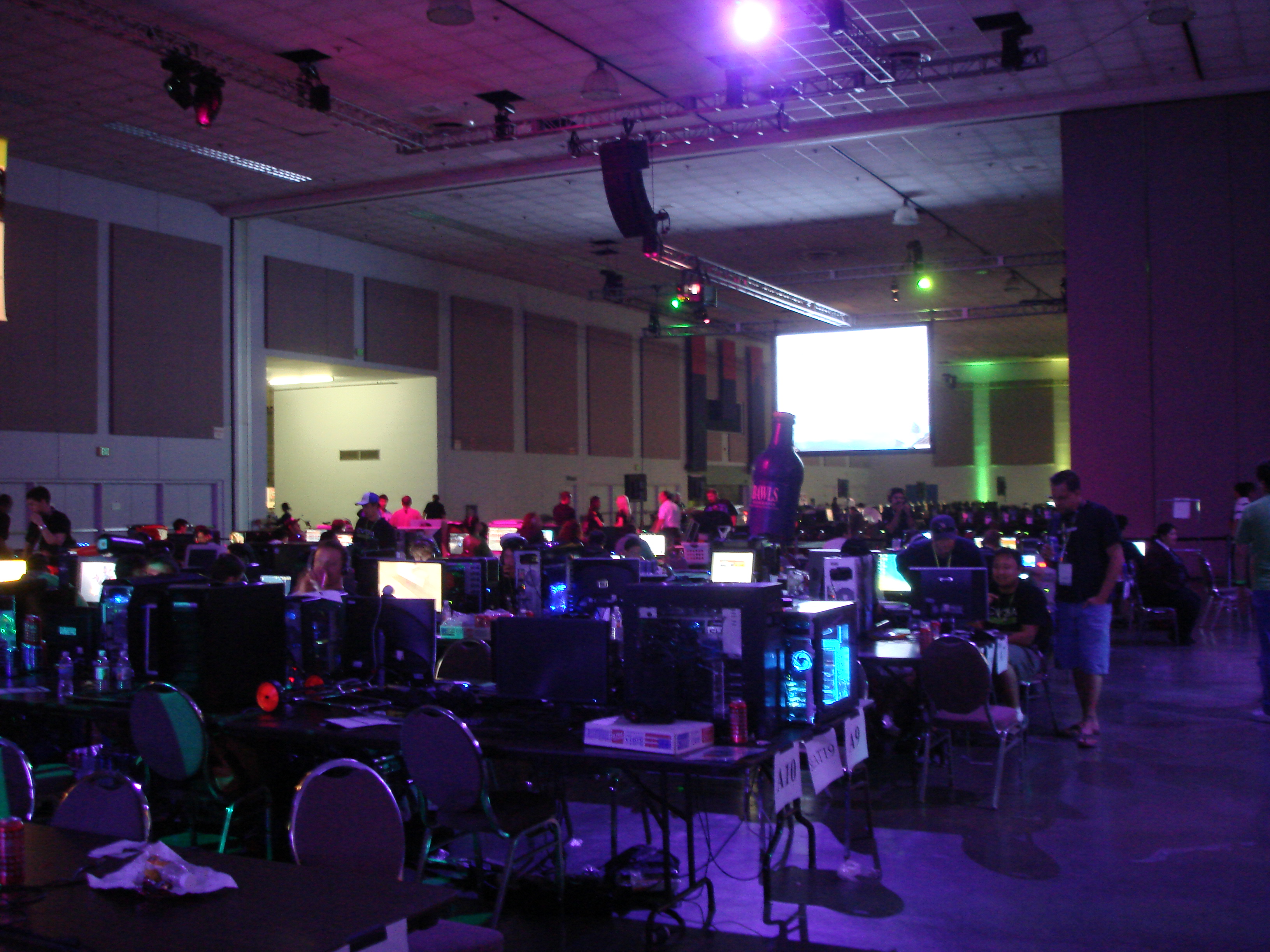 For those of us in the LAN area, as per typical corporate LAN event style there was a stage set up with a PA system in which regular raffles and contests took place. It provided a welcome distraction and gave people a reason to get out of their seats, move around and most importantly win cool prizes. Typically when it comes to the contests, the goofier the better. Some past contests of this nature at other LAN events involved seeing how many marshmallows the contestants could fit in their mouths, peanut butter eating contests, dance offs, and various physical challenges.
