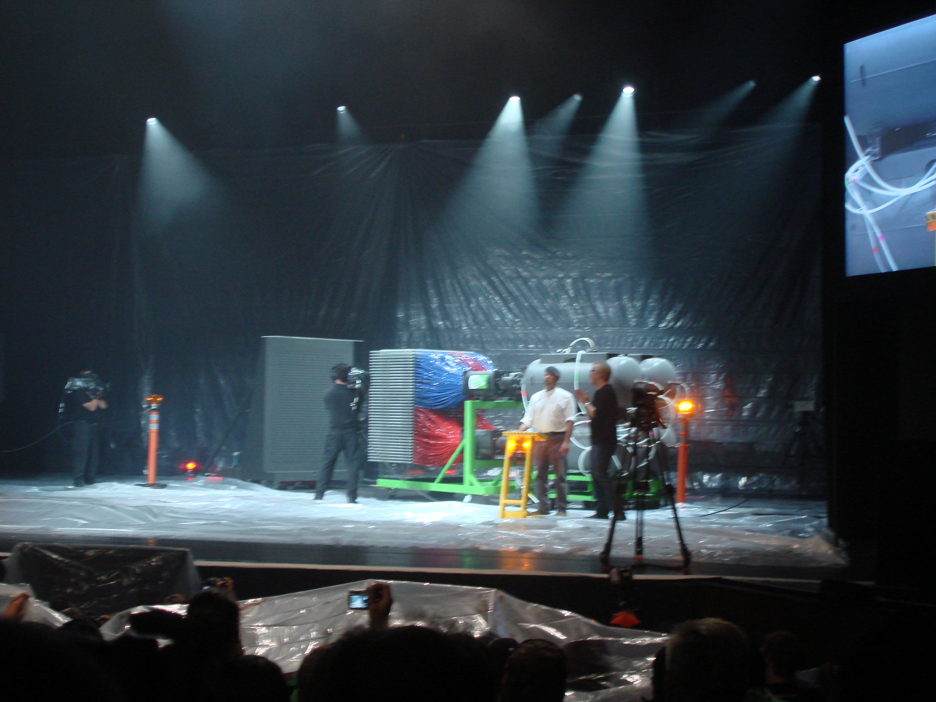 In the nearby San Jose Center for the Performing Arts there was a stage show by none other than the Mythbusters. Part of their stage show included demonstrating a monstrous 1100 barrel paintball machine that created a “painting” of the Mona Lisa in a single simultaneous shot of all barrels at once. It was quite entertaining and only tenuously linked to anything to do with Nvidia. Apparently they were attempting to illustrate the parallel processing abilities of Nvidia GPU’s (or something).