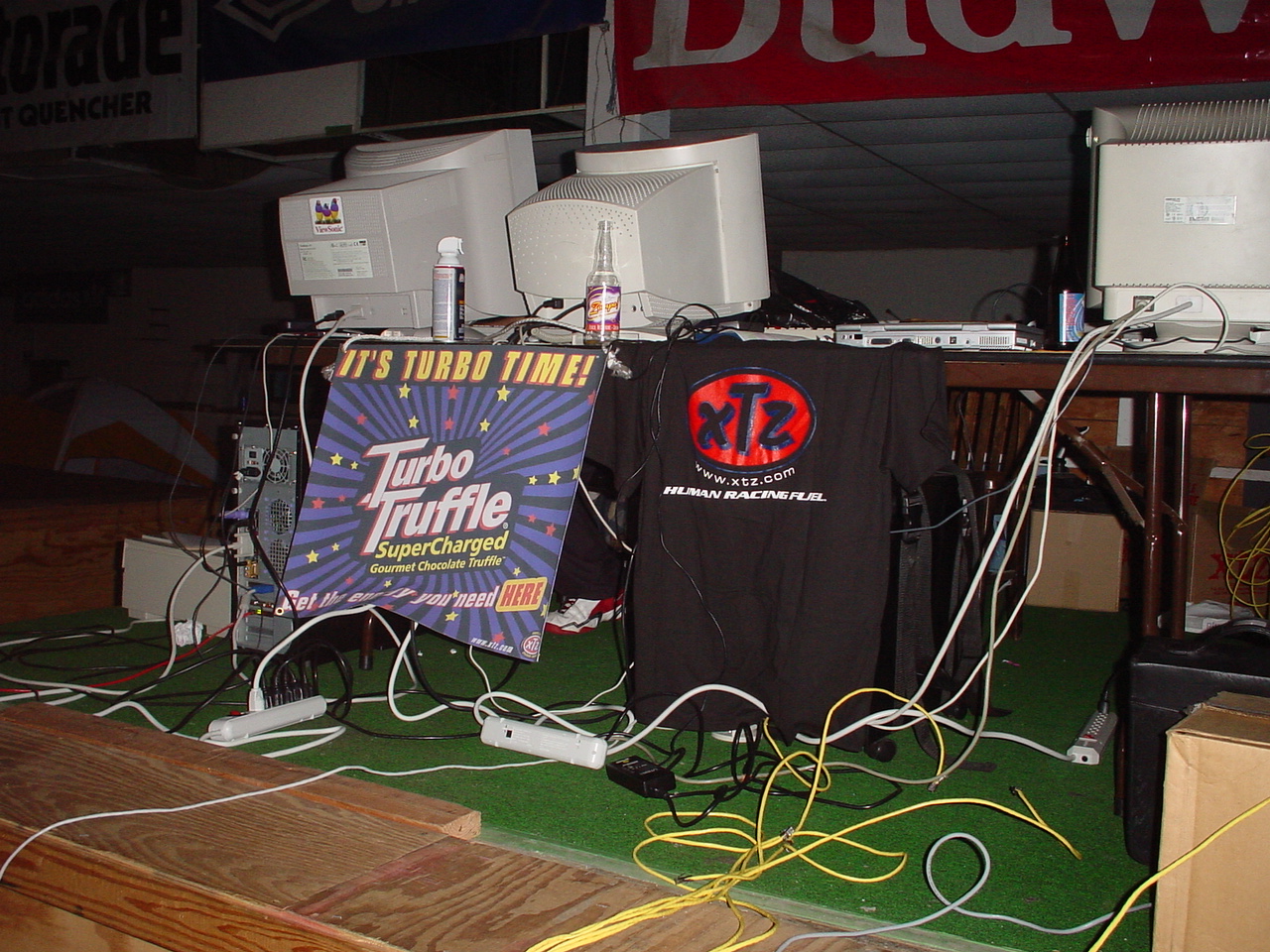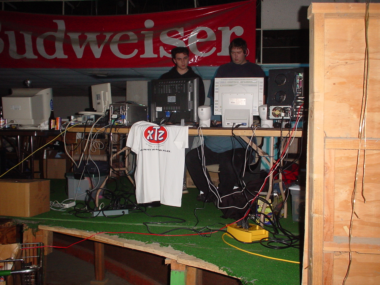 In the afternoon on the second day the raffle was started. This time not one, but TWO Pentium 4 processors were raffled off. This was totally awesome, and by far the best LAN raffle prizes I've ever seen. Unfortunately it wasn't as awesome as it could have been, because like at 001, I didn't win jack. Gamekiller was lucky enough to win one of the ultra fantastic "Shred Proof", "Ultimate in Optical Mousepad Technology" mousepad that is LITEPADS. Gamekiller also won the case mod contest, thanks to his l33t computer modding skills. Jen won a nice t-shirt from the drink sponsor XTZ. Even though I didn't win anything, I was just happy that Jen won a t-shirt instead of another processor.