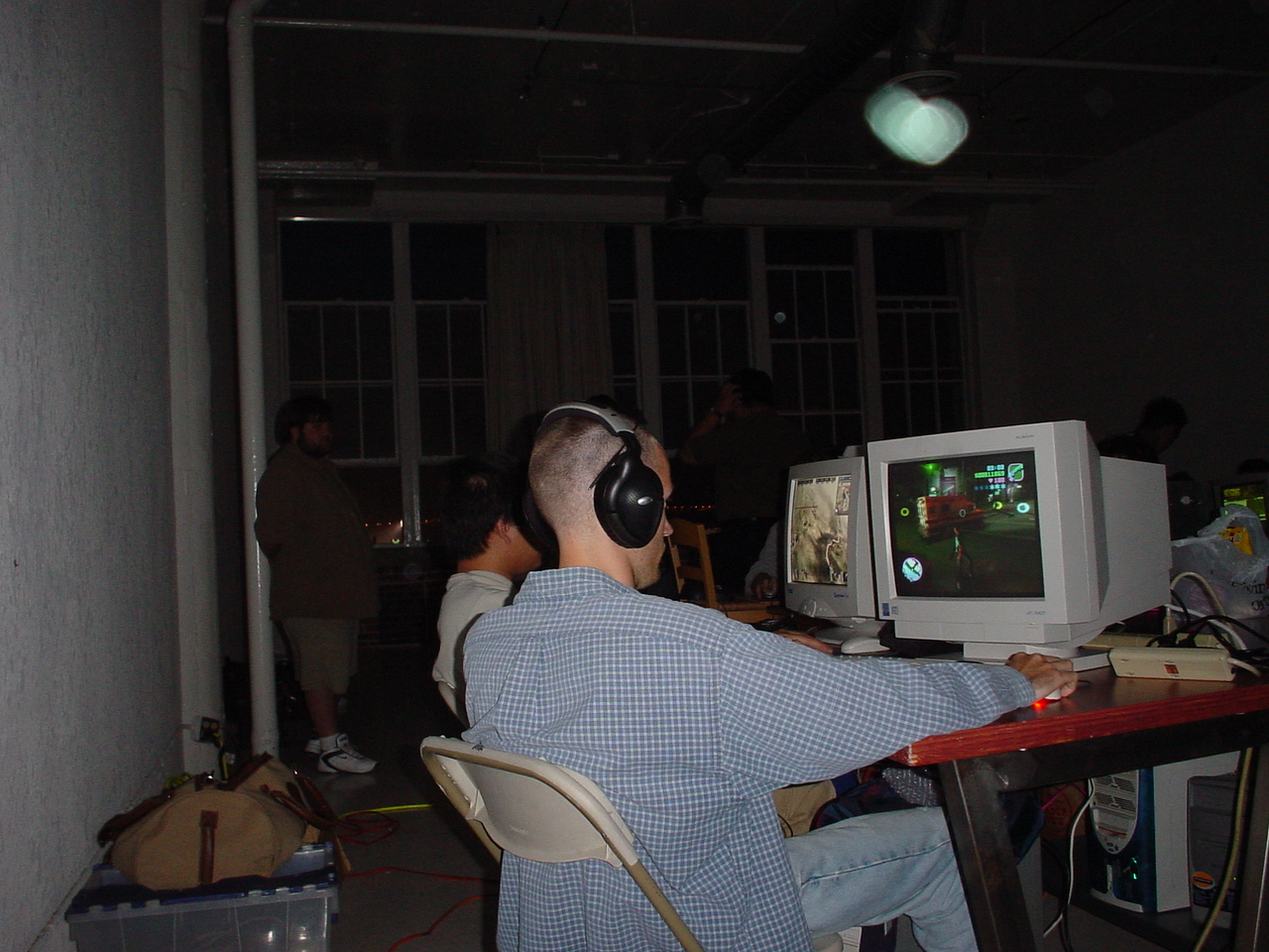We proceeded to LAN the rest of the day, and the location proved to provide an excellent view of the city lights at night. This was when many of us were first introduced to the game Vietcong, which would become a popular game among us for LANs to come. This was also another game that Zer got ahold of, and with no prior experience playing it, proceeded to kick everyone's ass at it. I also discovered that he had a very bizarre method of re-mapping his keys, and instead of the standard WASD he had some strange keyboard layout that he scientifically devised as being the most efficient possible. It was definitely too mind boggling for me, but it seemed to work well for him.