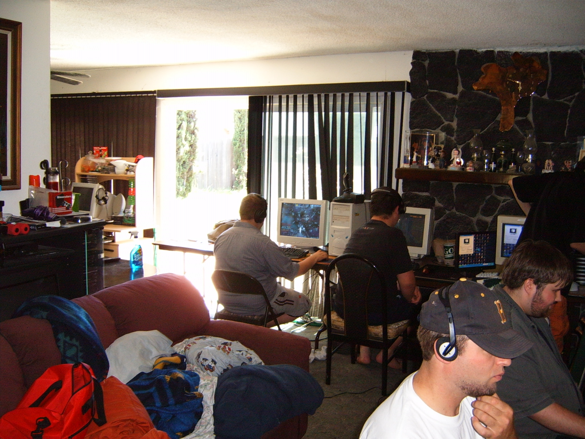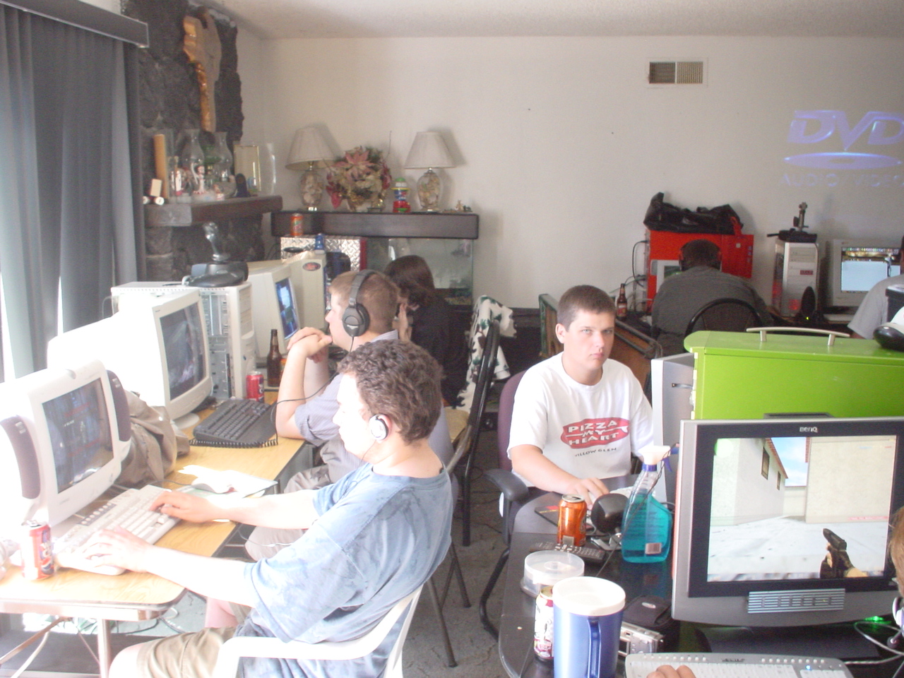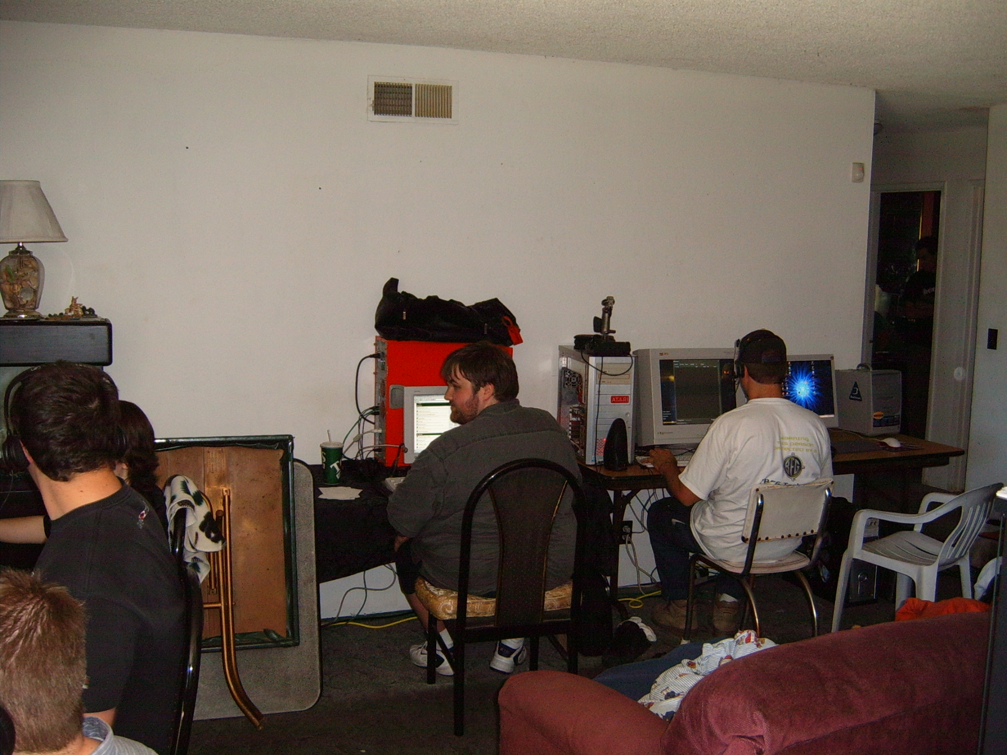 Apparently there was a “pre-party” that I missed out on, but by all accounts, it was pretty wild. When I arrived things had pretty much settled down, from the night before. People were lounging around, leeching files, and playing games… in a leisurely manner. Kraz was outside, “modding” his car, which seemed like an odd thing to do at a LAN.