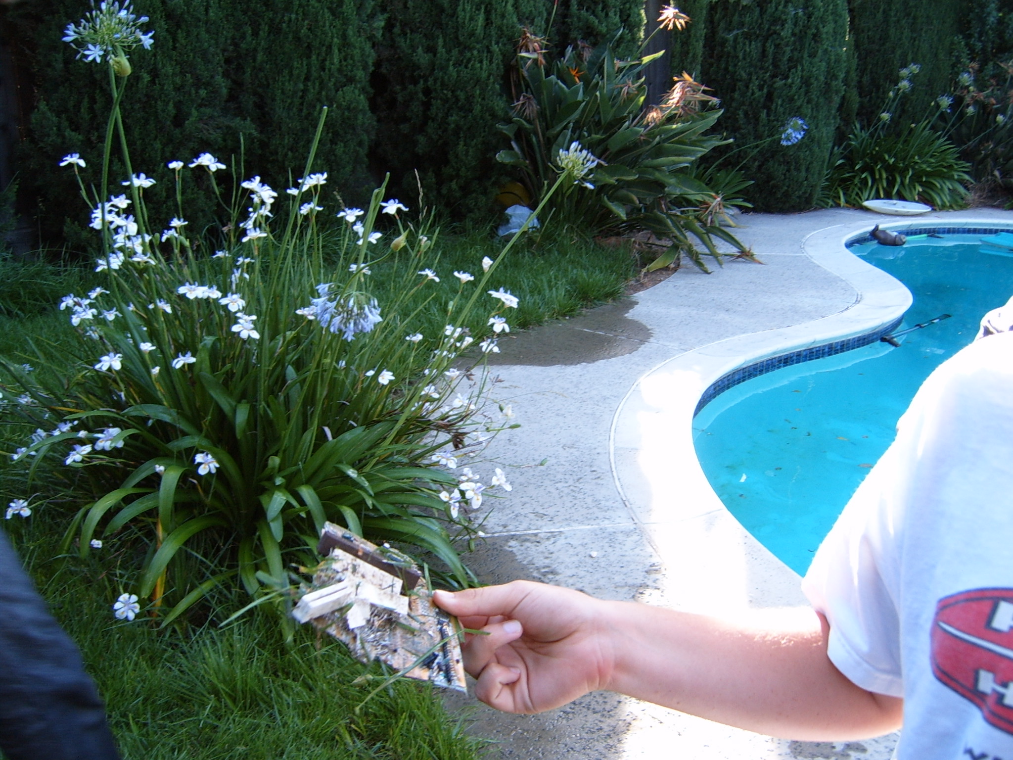 I went inside, set up my computer and, as it turned out, didn’t end up actually playing anything till a few hours later. I was fully content to engage in leisurely activities and “chill” with the guys. I went outside, and Metalslug was in the pool, and appeared to be retrieving some kind of motherboard and bits of electronic components off of the bottom of the pool. At first, I was unsure as to whether this was some kind of watercooling experiment gone awry, but then I noticed a pile of what seemed to be scrap components on a nearby chair, and that’s when I realized that shenanigans were afoot… more on that later.