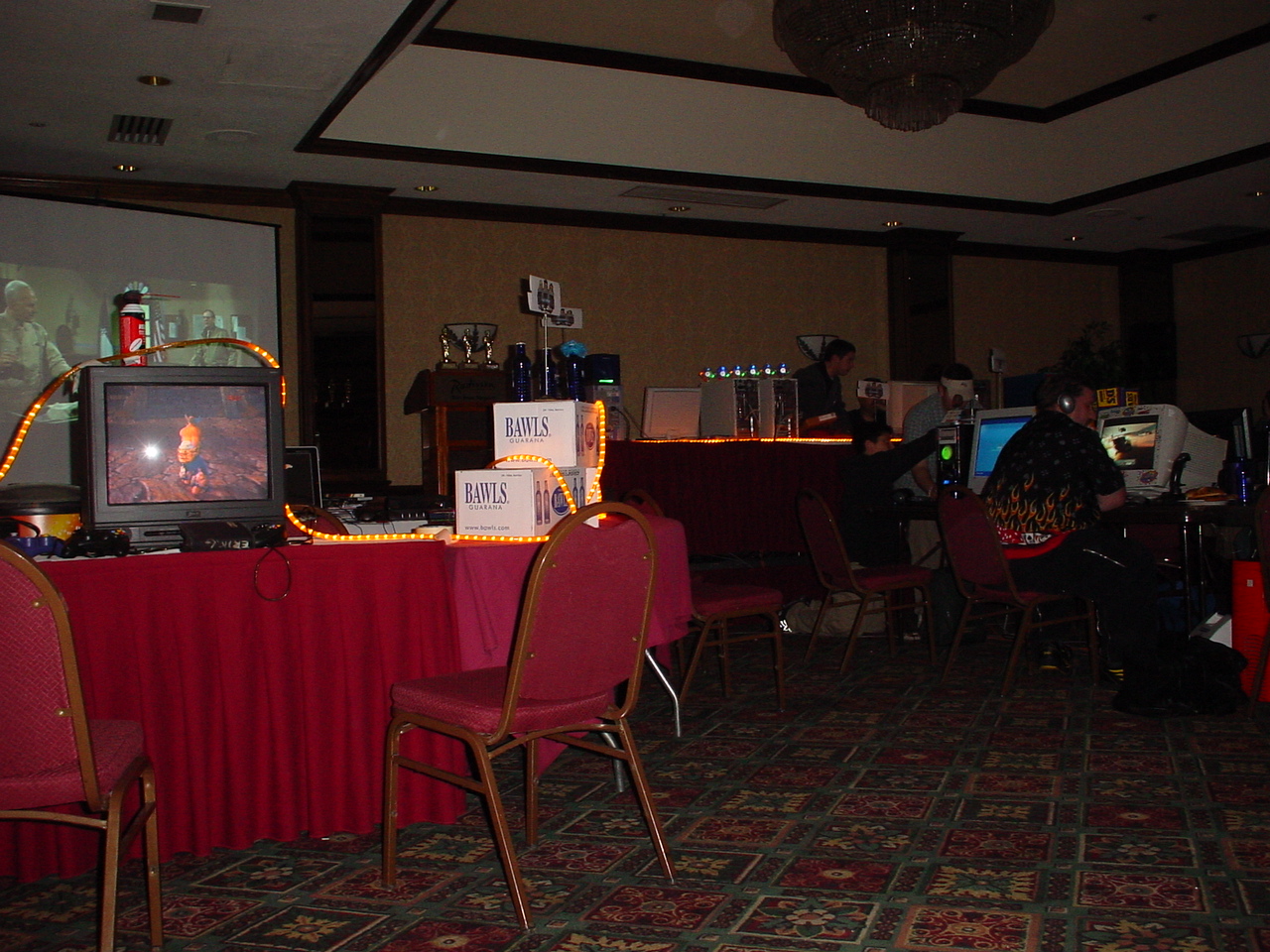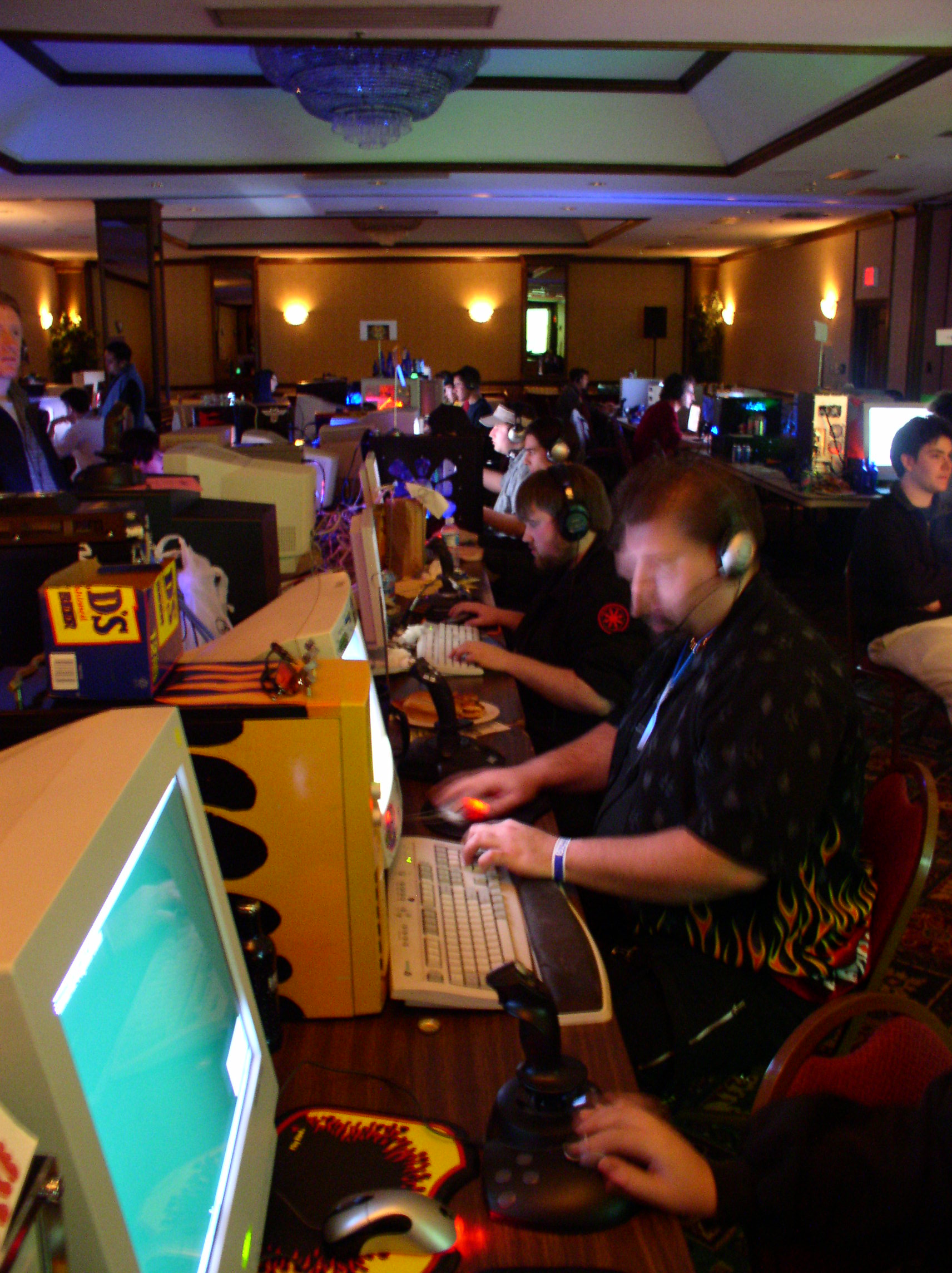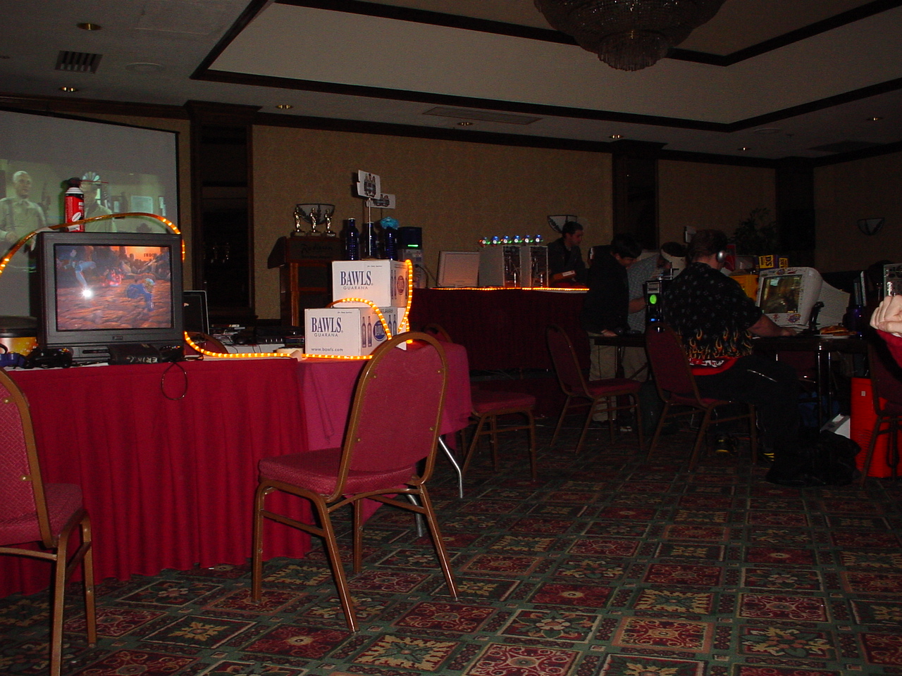 I am happy to report that MF 3 had NONE of these problems and went off without a hitch. The power never went down (with the exception of one table that accidentally plugged in everything to one outlet instead of distributing among the two outlets assigned to that table). The network ran great, and the tournaments were extremely organized and there were no disputes as in last time. There was even more stuff to raffle off so a lot of people walked away with goodies. I have uber respect and admiration for the entire monster crew. There were only three of them, but somehow they managed to make sure everything ran smoothly the whole time. Morfeus did a great job at being the MC and coordinating the events and doing the raffles and generally making sure the party moved along and nobody got bored. Wireballz and Layer_III did an amazing job at keeping the servers up and running and quickly solving all network and administrative problems. And let’s not forget about Morfeus’ wife at the check in counter who handled the payments, party favors and handouts. A great team, running a great LAN.