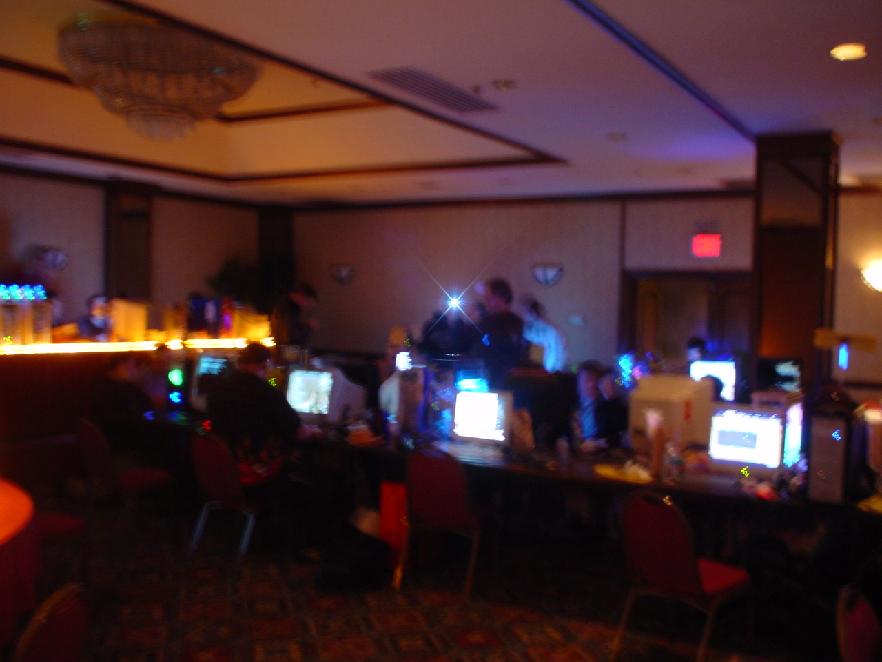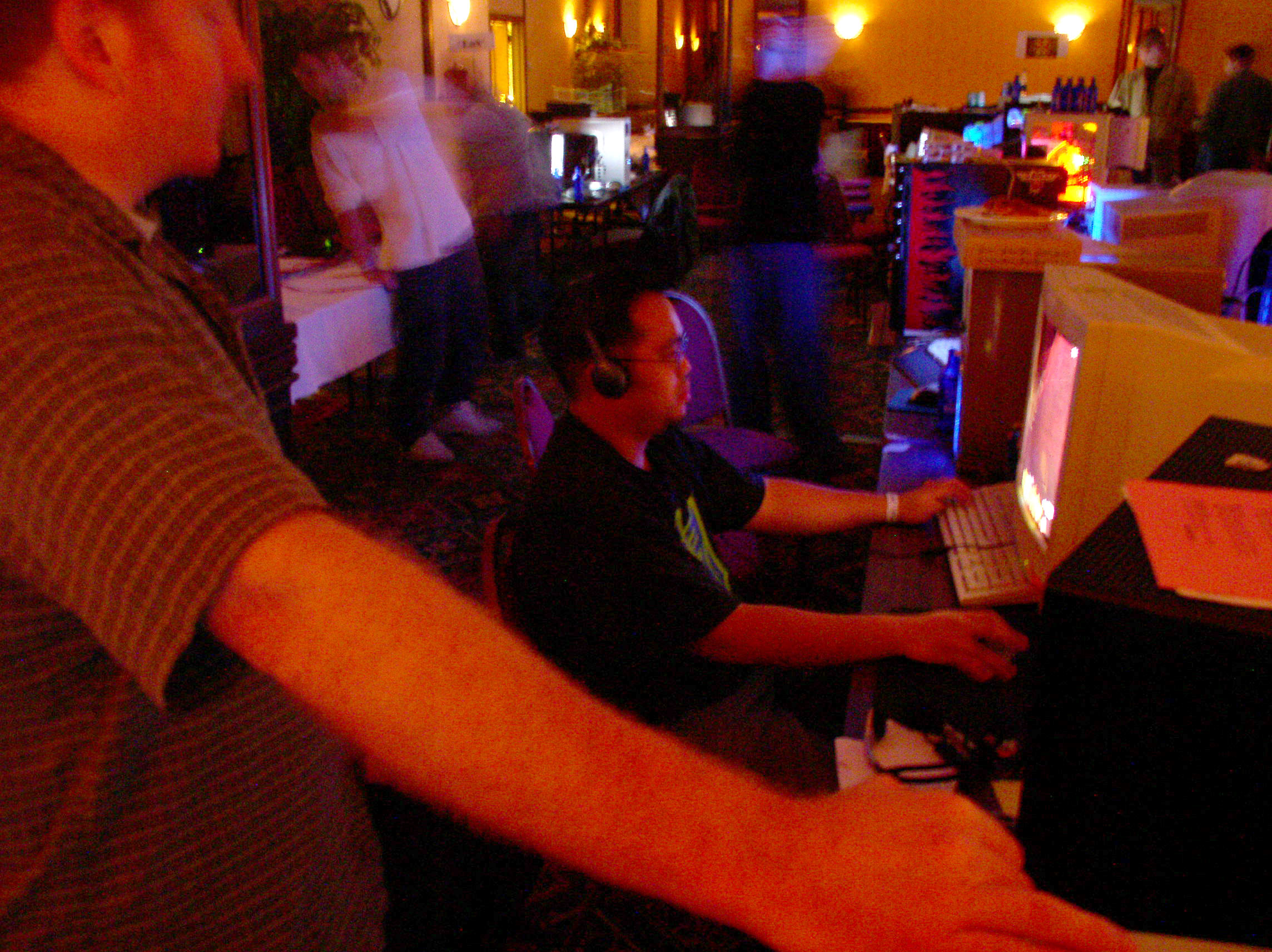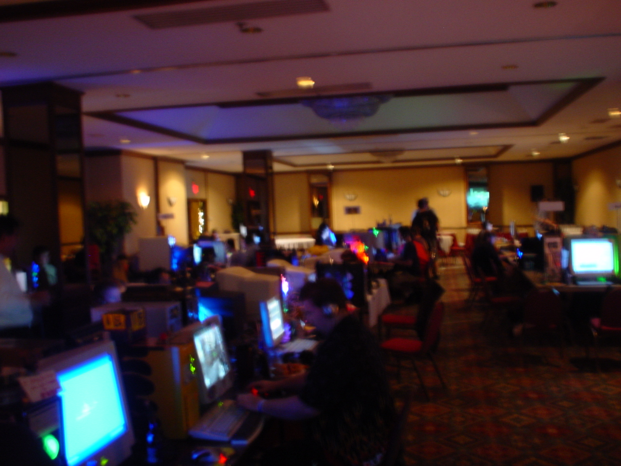 I am happy to report that MF 3 had NONE of these problems and went off without a hitch. The power never went down (with the exception of one table that accidentally plugged in everything to one outlet instead of distributing among the two outlets assigned to that table). The network ran great, and the tournaments were extremely organized and there were no disputes as in last time. There was even more stuff to raffle off so a lot of people walked away with goodies. I have uber respect and admiration for the entire monster crew. There were only three of them, but somehow they managed to make sure everything ran smoothly the whole time. Morfeus did a great job at being the MC and coordinating the events and doing the raffles and generally making sure the party moved along and nobody got bored. Wireballz and Layer_III did an amazing job at keeping the servers up and running and quickly solving all network and administrative problems. And let’s not forget about Morfeus’ wife at the check in counter who handled the payments, party favors and handouts. A great team, running a great LAN.