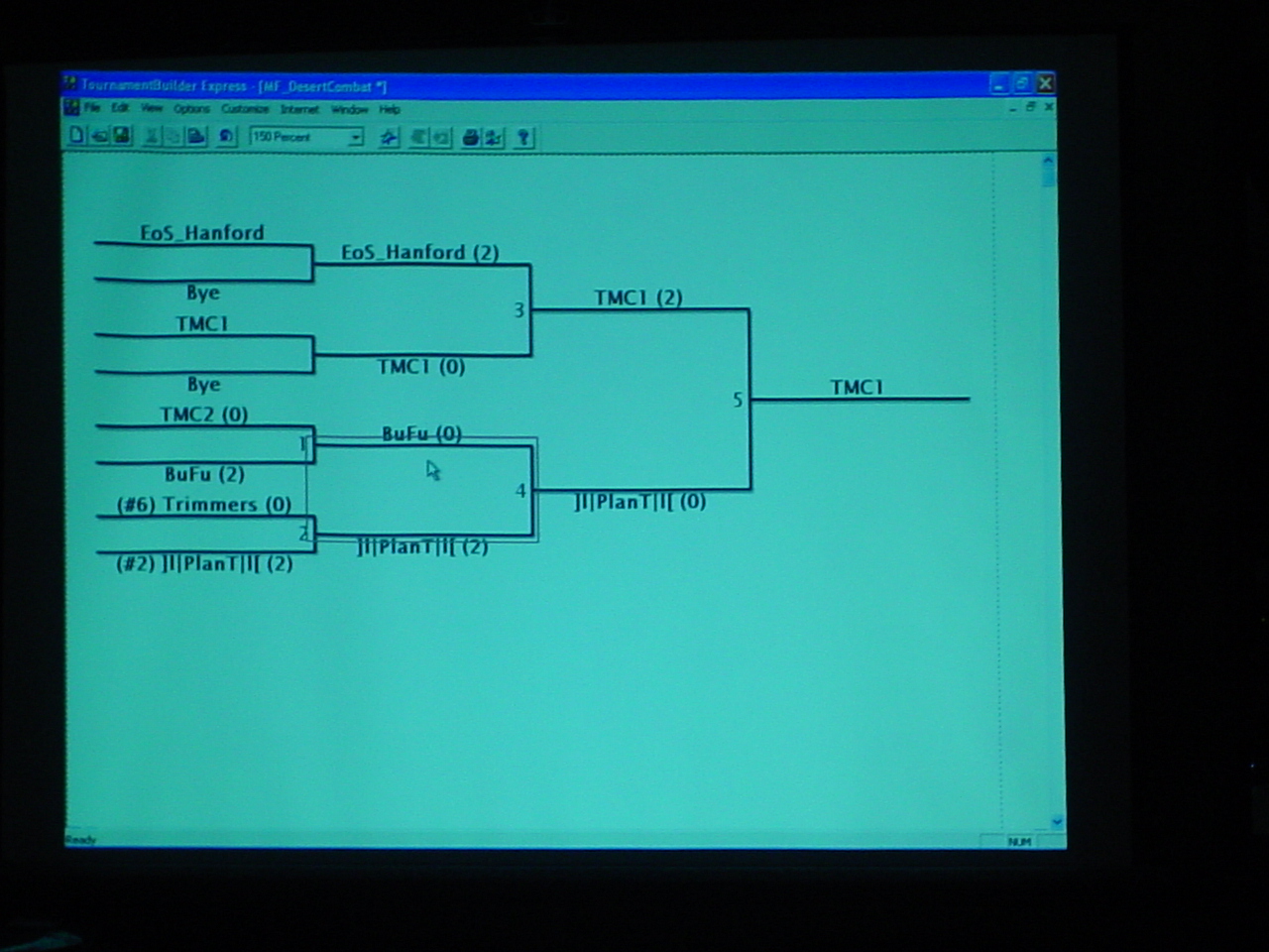 First off, the TMC2 team went up against one of Palmas two teams and was mercilessly slaughtered. TMC1 fared much better, consisting of Active Monkey, Beebo, Demise and two temporary players aFTERMATH and Metalslug. TMC1 showed good team communication and organization, which helped them to advance to the finals where they faced Palmas other team. The first round of the finals was pretty close, but Palma ended up taking the win. It wasn’t over yet, and as the second round was ready to get underway, Activemonkey decided it would be an excellent time to change out his hard drive cooling fan. Needless to say, this threw a “monkey” wrench into things as the fan didn’t fit correctly and he was forced to play with his rig on top of his monitor (see pic). This in itself wouldn’t have been too much of a problem, but it appeared that the team concentration, communication and coordination wasn’t quite there this time, and TMC1 ended up losing the finals. Even so, TMC1 did a superb job in getting the silver, especially considering they had never practiced together with that particular team lineup. Now that we know what to expect, we will be prepared for the next time!