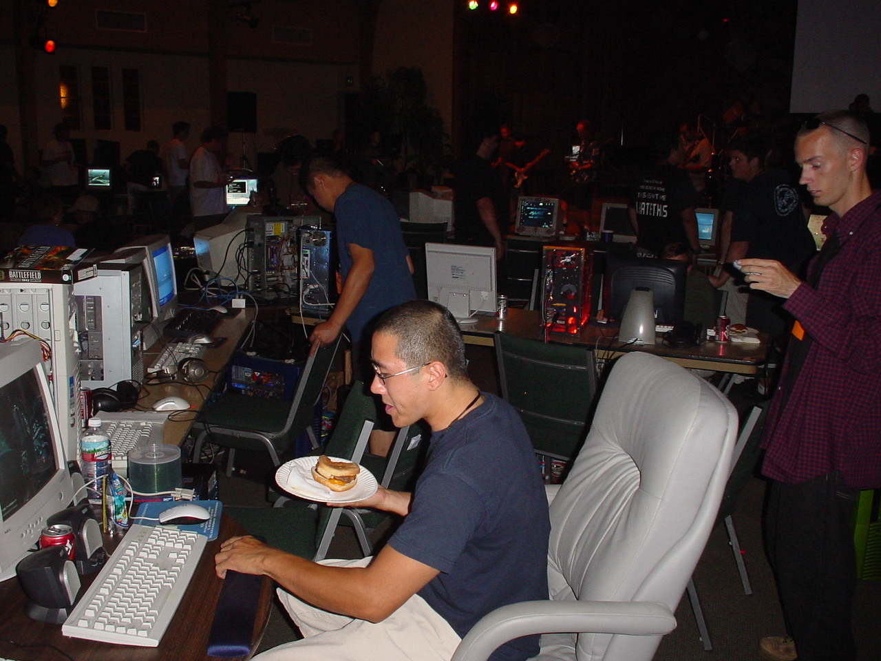 There was a lot less staff this time, which made the technical difficulties take a bit longer to fix. Luckly Kraz, Tom and Brian of Typ0 stepped up to help with the network problems, and Mameman became the Iron Chef with his blazing BBQ inferno of doom.