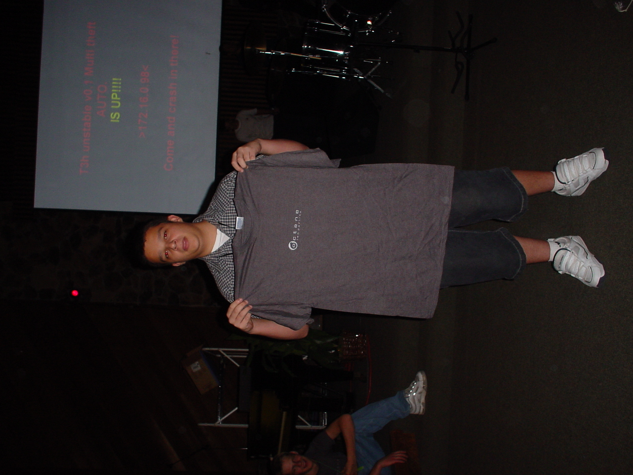 Sometime before dawn, our big prize, the Intel donated Motherboard and CPU were raffled off, along with some t shirts and a few other odd items.