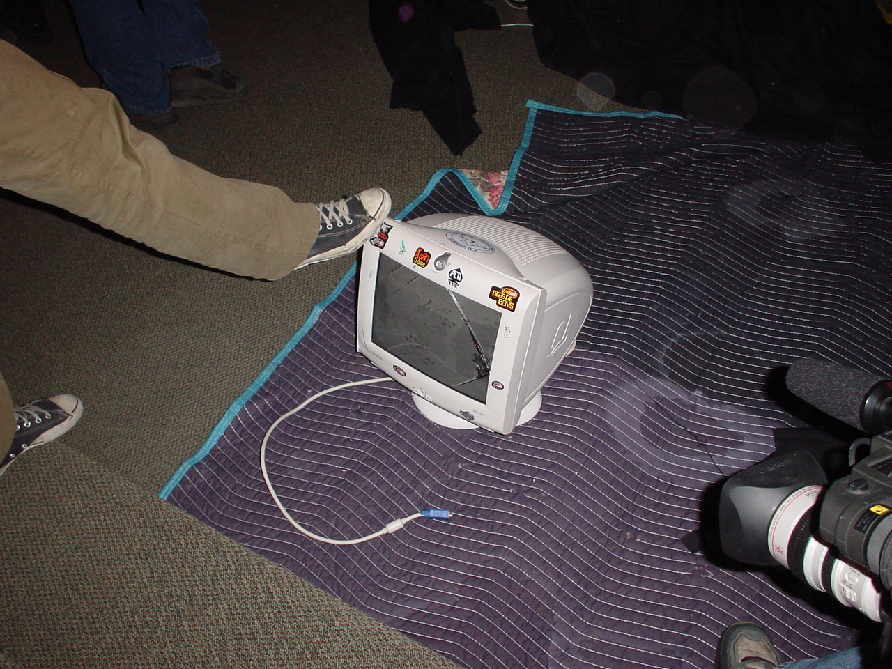 That said, this one was notable in that there was some kind of prize giveaway in which a prize was offered to anyone willing to smash their monitor. As you can see in the picture, there was a kid who took them up on the offer. Everyone watched in delight and amazement as the kid smashed his monitor on the ground.