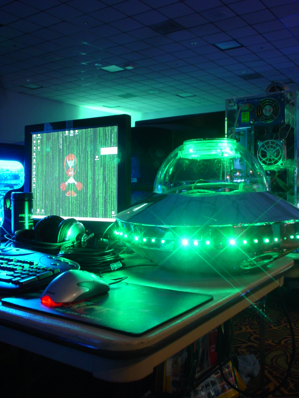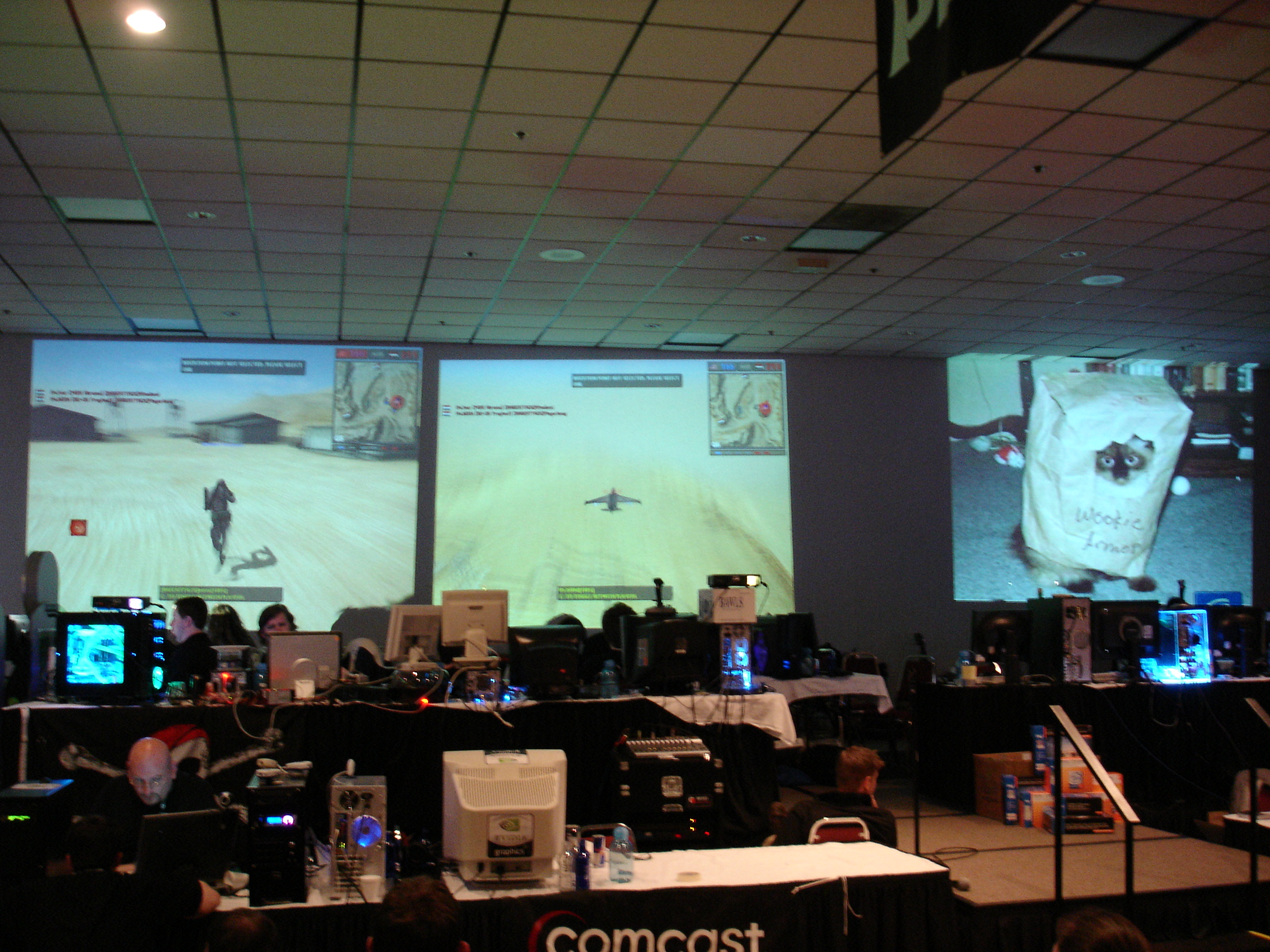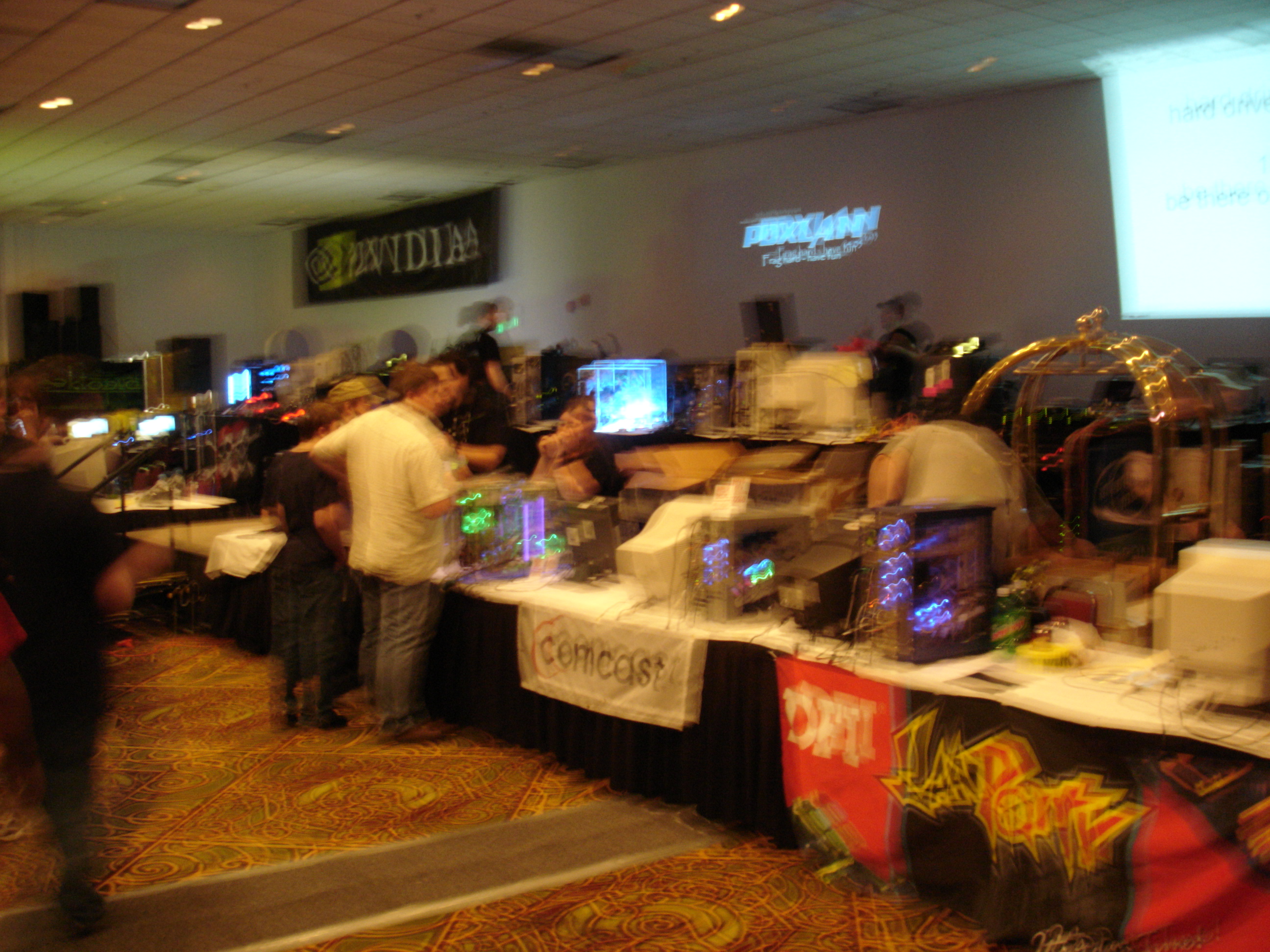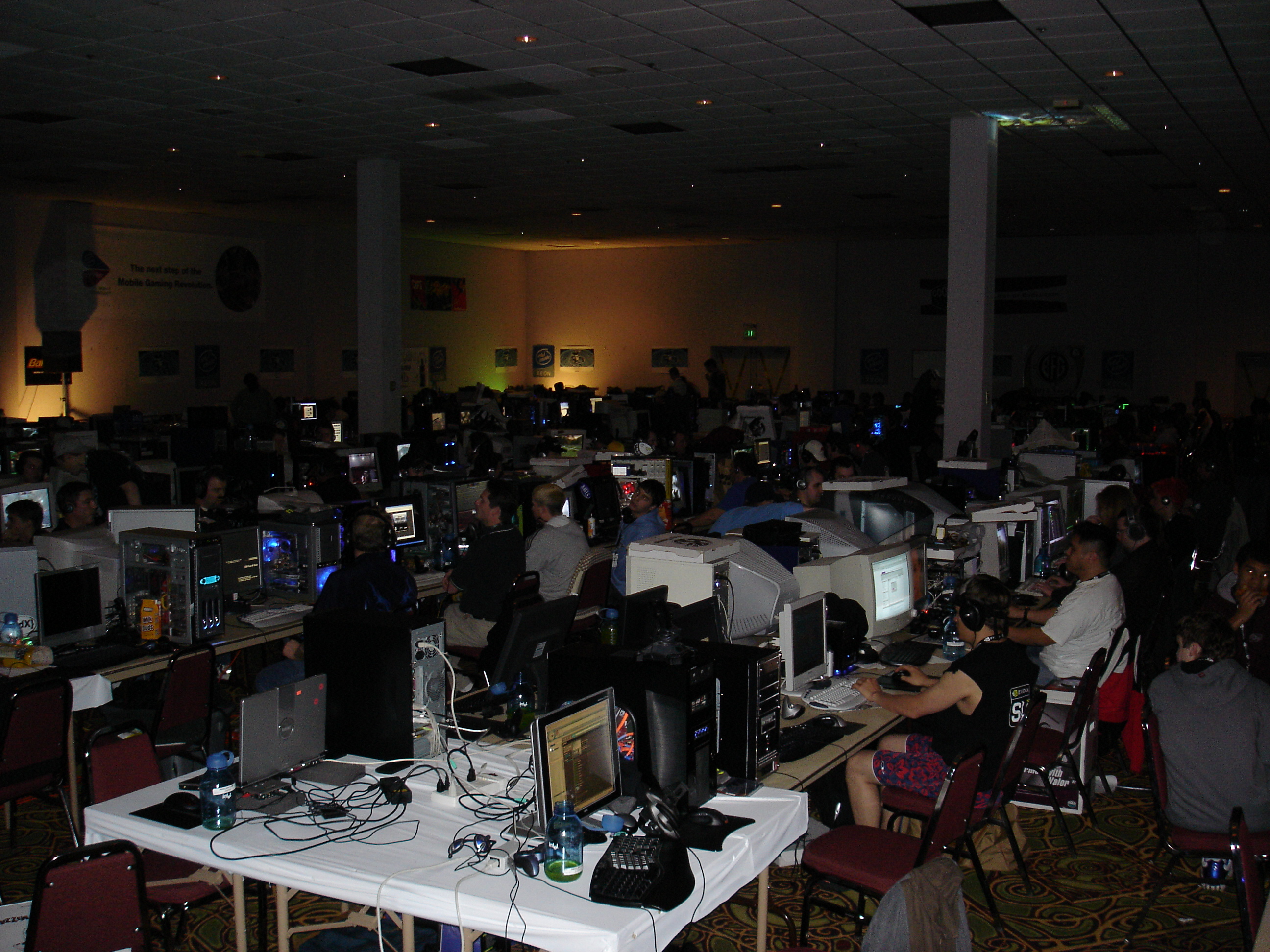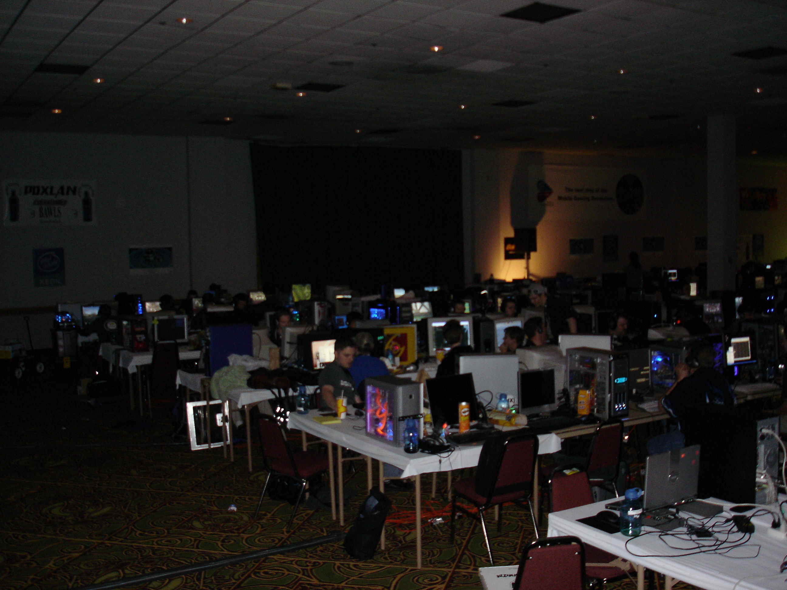 Since we registered late we were in the “annex’ portion, which was about 100 people worth of overflow seating in a completely different part of the building than the rest of the LAN was in. Periodically announcements were made about contests or raffles that were happening in the other building, and all of us annex attendees would wander over. The annex overall was never a great idea as it made us feel disconnected from the rest of the event, and I don’t think any future PDX events used it again.