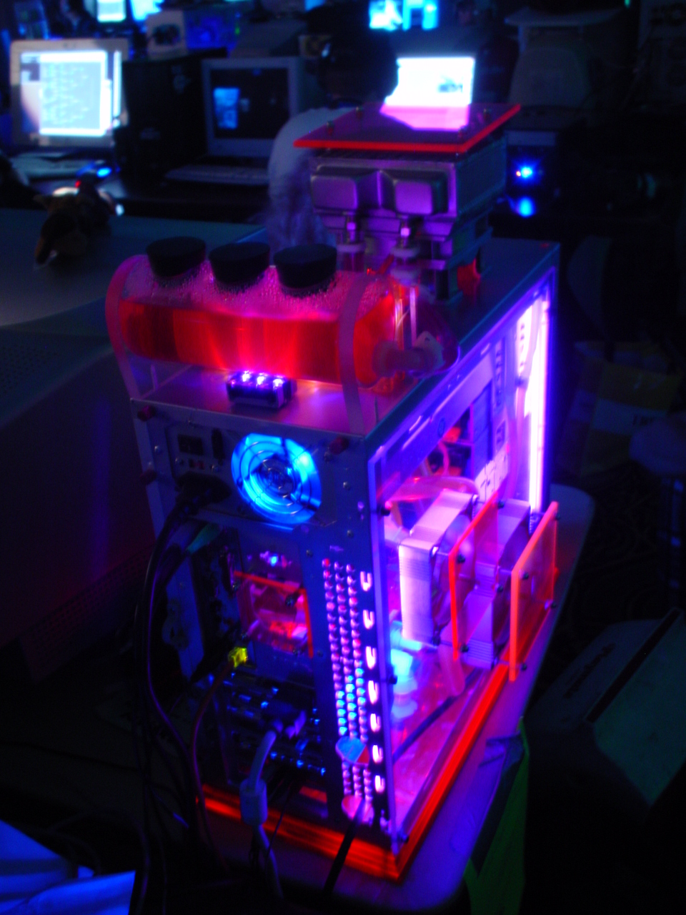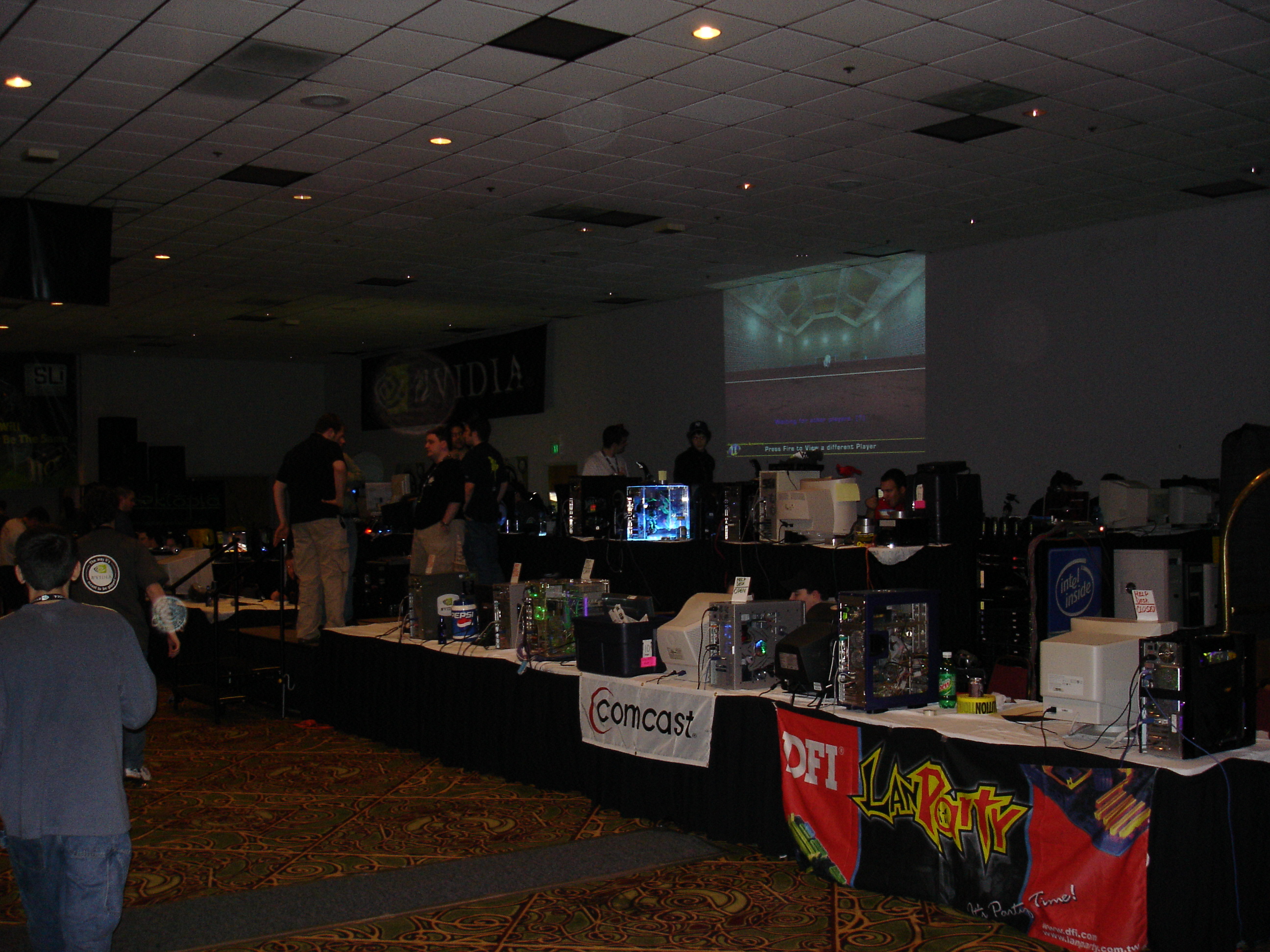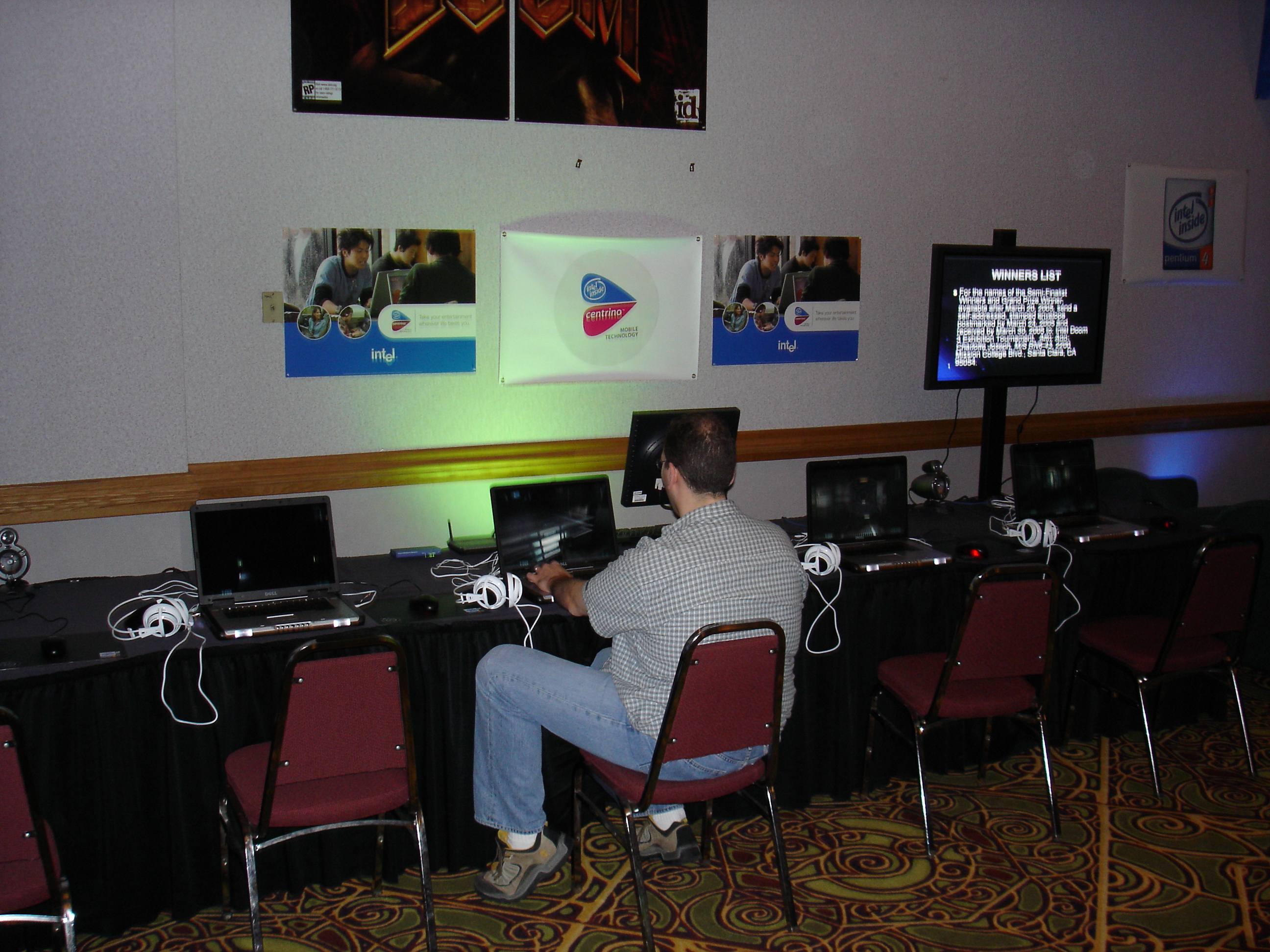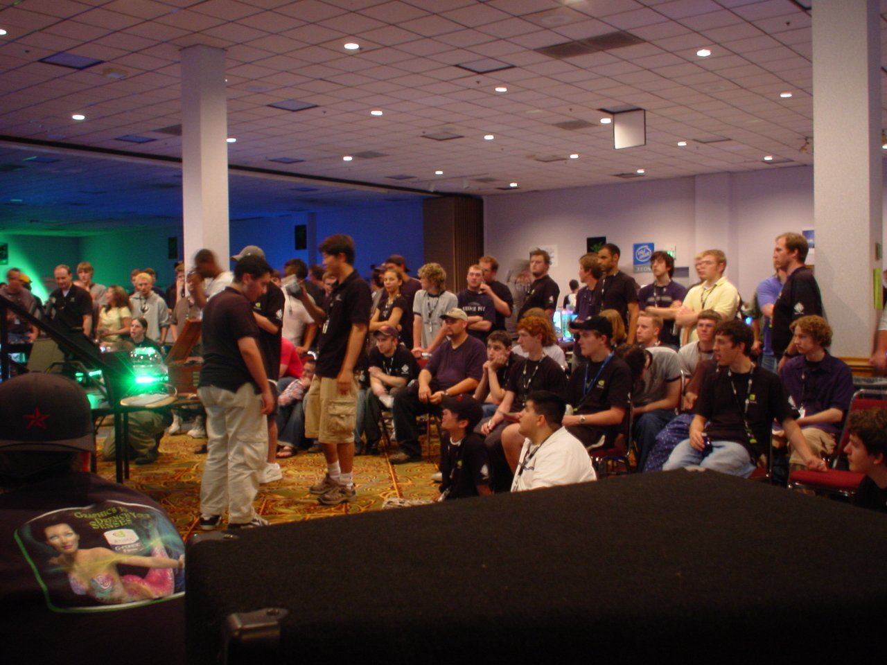 The event itself was fantastic. There were over 500 attendees and it was the biggest and best LAN any of us had ever seen. They even had unlimited free fountain drinks available. There were also tons of contests and raffles. We ended up winning tons of prizes too. The first winner I remember was Kraz who answered some really obscure tech question that was asked by one of the Intel presenters during their stage presentation. For this he won a brand new Pentium 4 Extreme edition and Motherboard. This was easily the most epic prize we had ever seen at a LAN (at the time the retail value of this was well over $1,000).