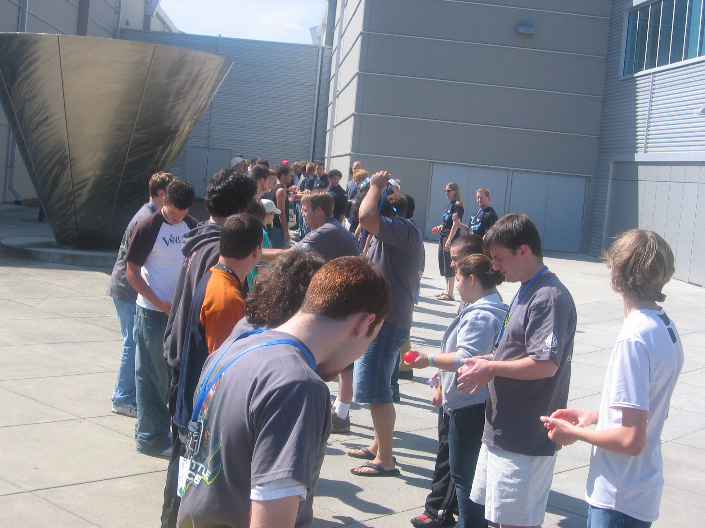 Other activities included, a rock paper scissors competition, musical chairs and a bunch of other crazy competitions. At one point us TMC guys decided to have our very own light show in the parking lot. This involved us gathering a bunch of the intel bouncy balls, which had LED lights inside of them that would activate when bounced. We got as many as we could find and launched them skyward in the parking lot and marveled at the lights as they flickered in the night sky and bounced all over the parking lot. The LED functionality was pretty much destroyed after about 10 minutes of this, but it was fun while it lasted.