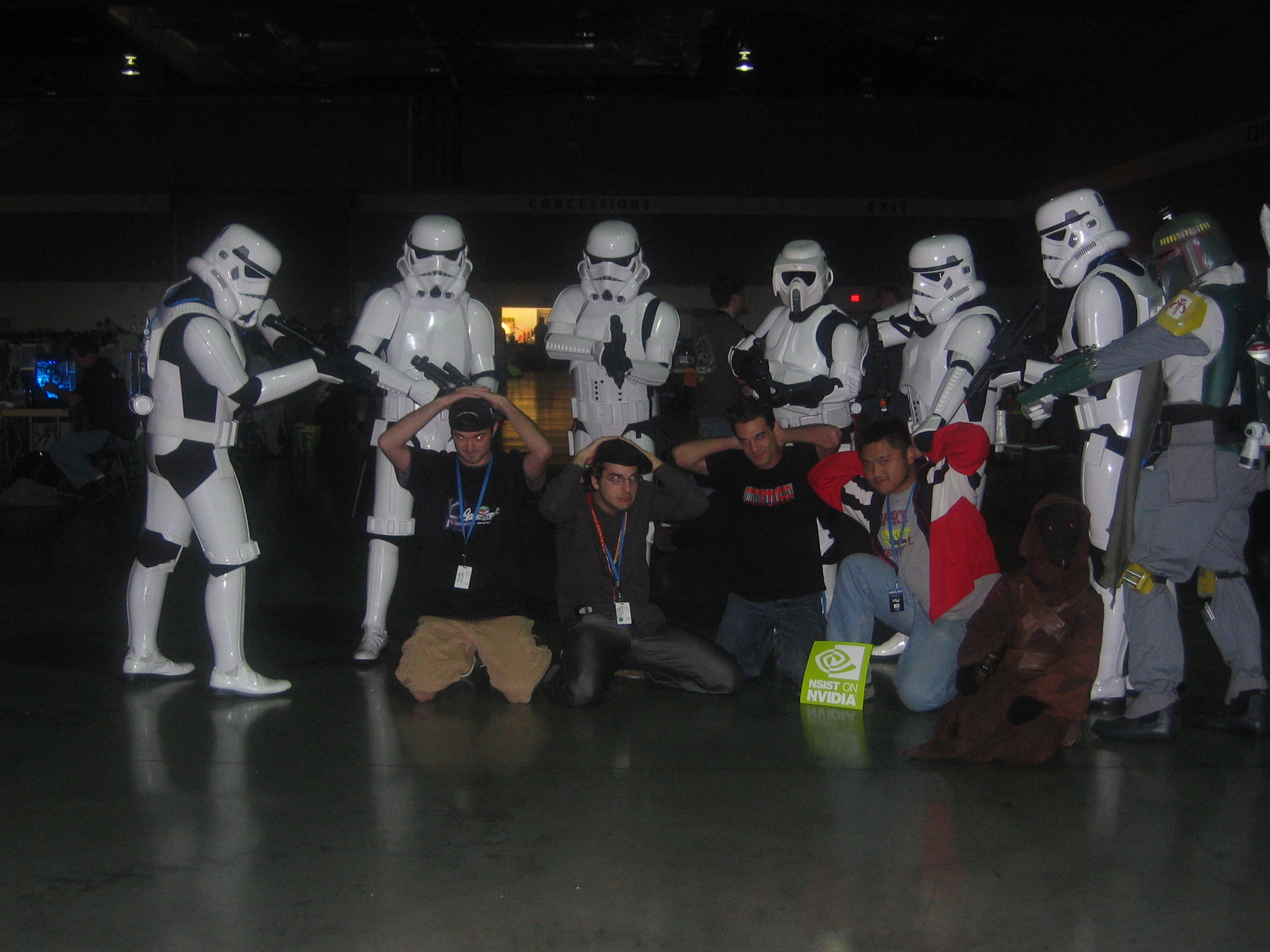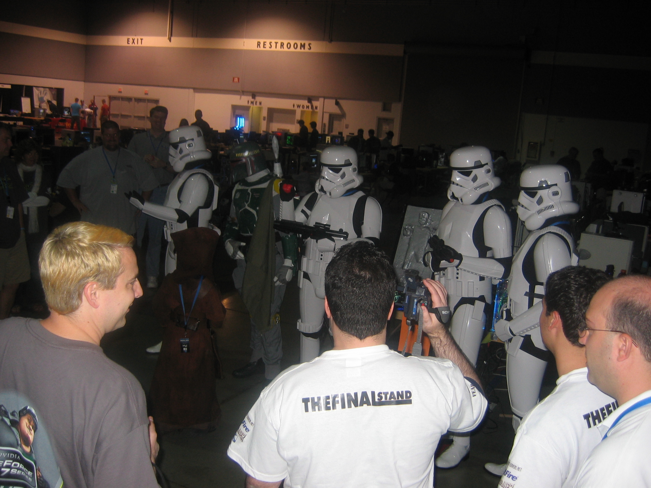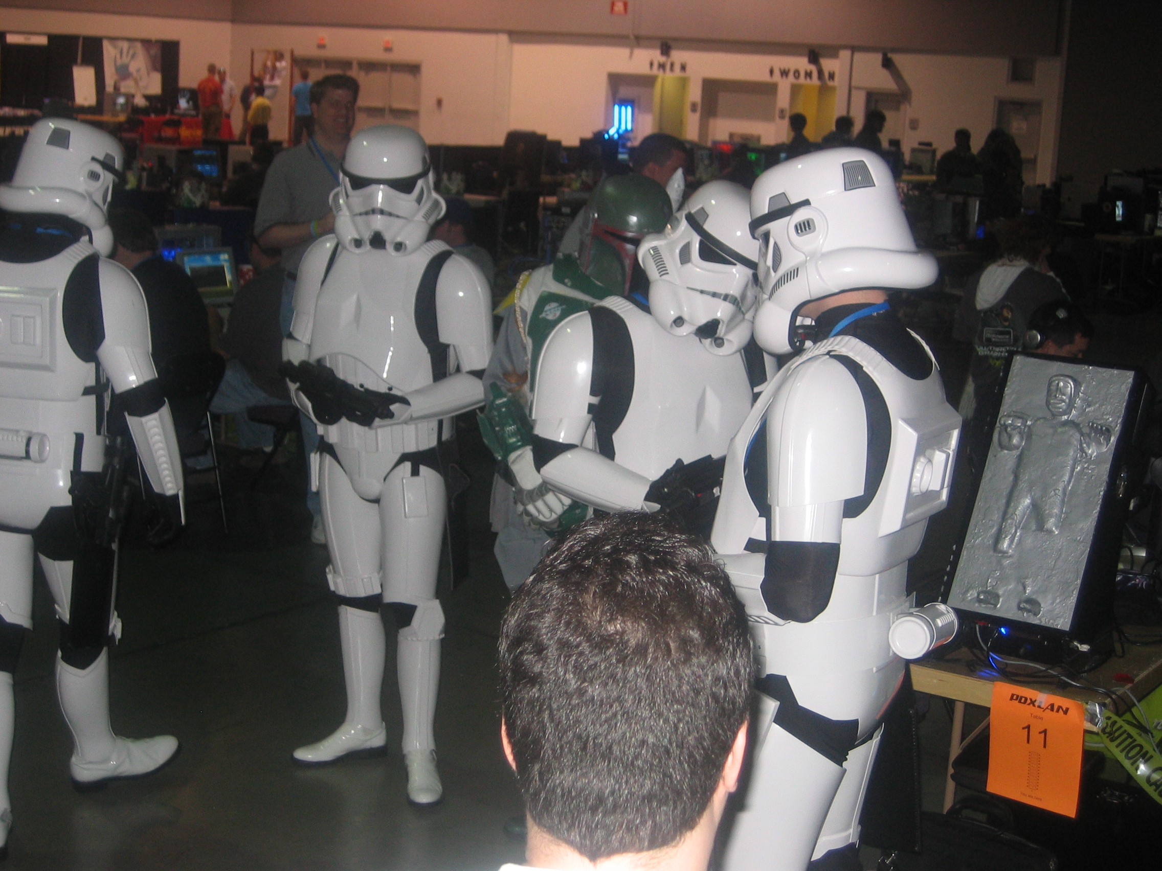 At one point during the lan we were invaded by a whole crew of Star Wars Storm Troopers. They all came in and everybody flipped out. It was awesome. Boba Fett was there too, and they even had a Jawa. Of course we got our pictures taken with them.