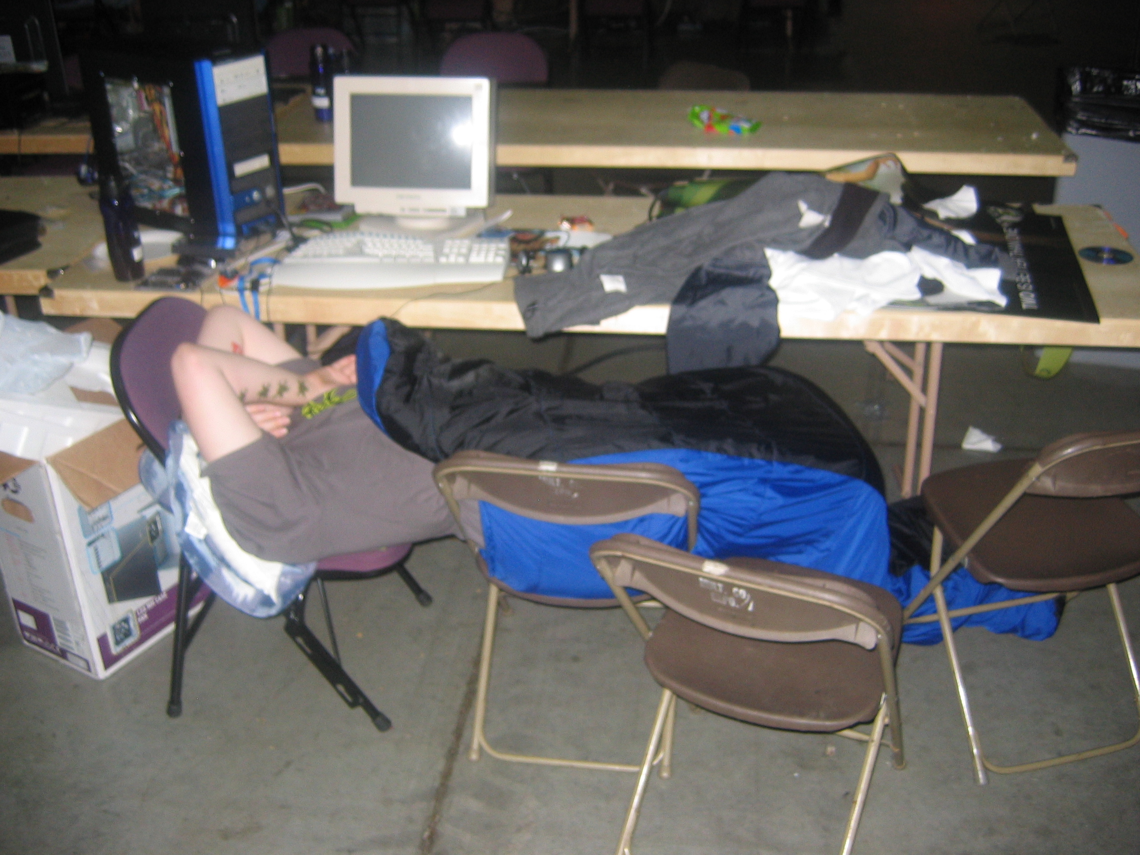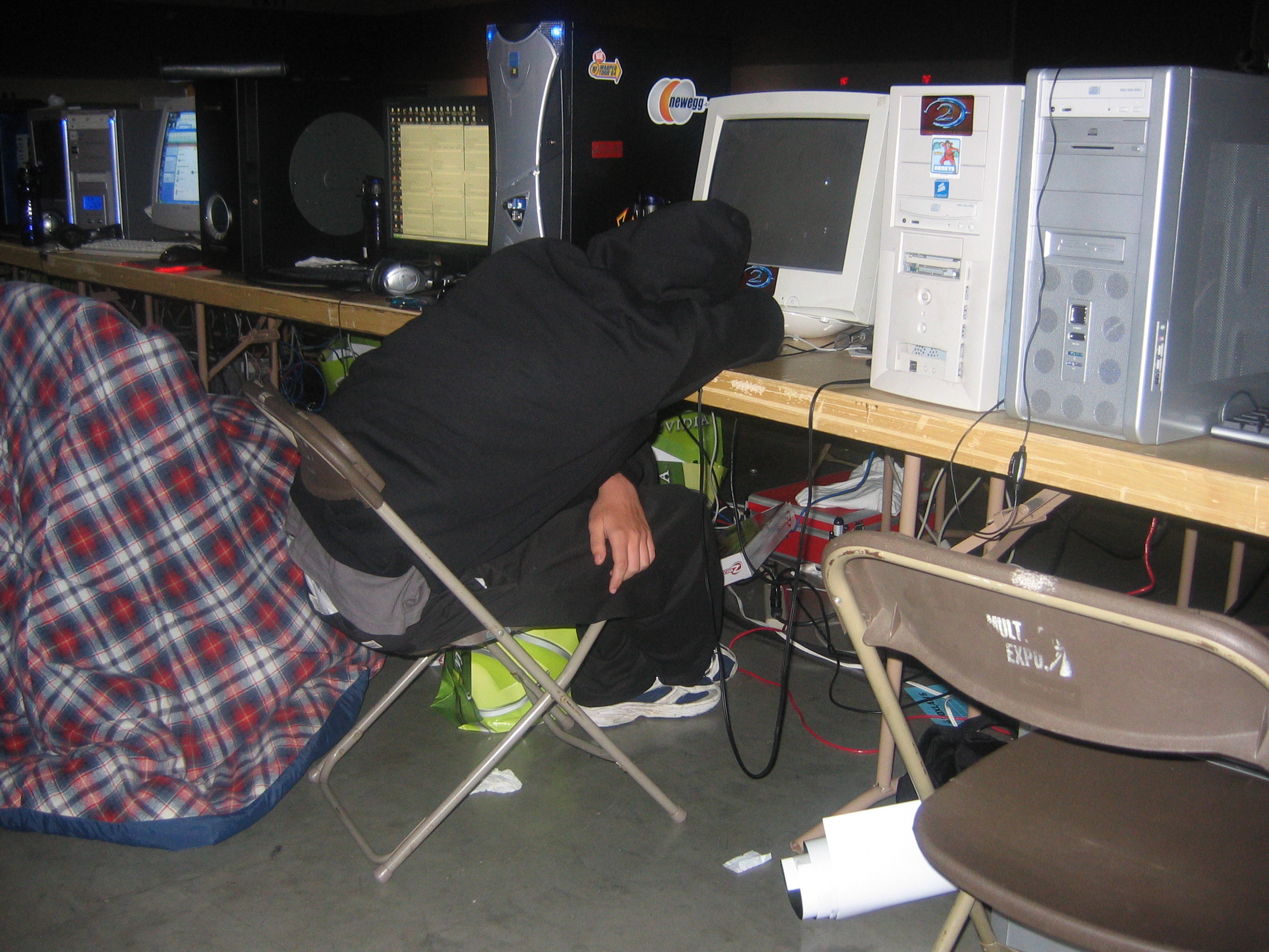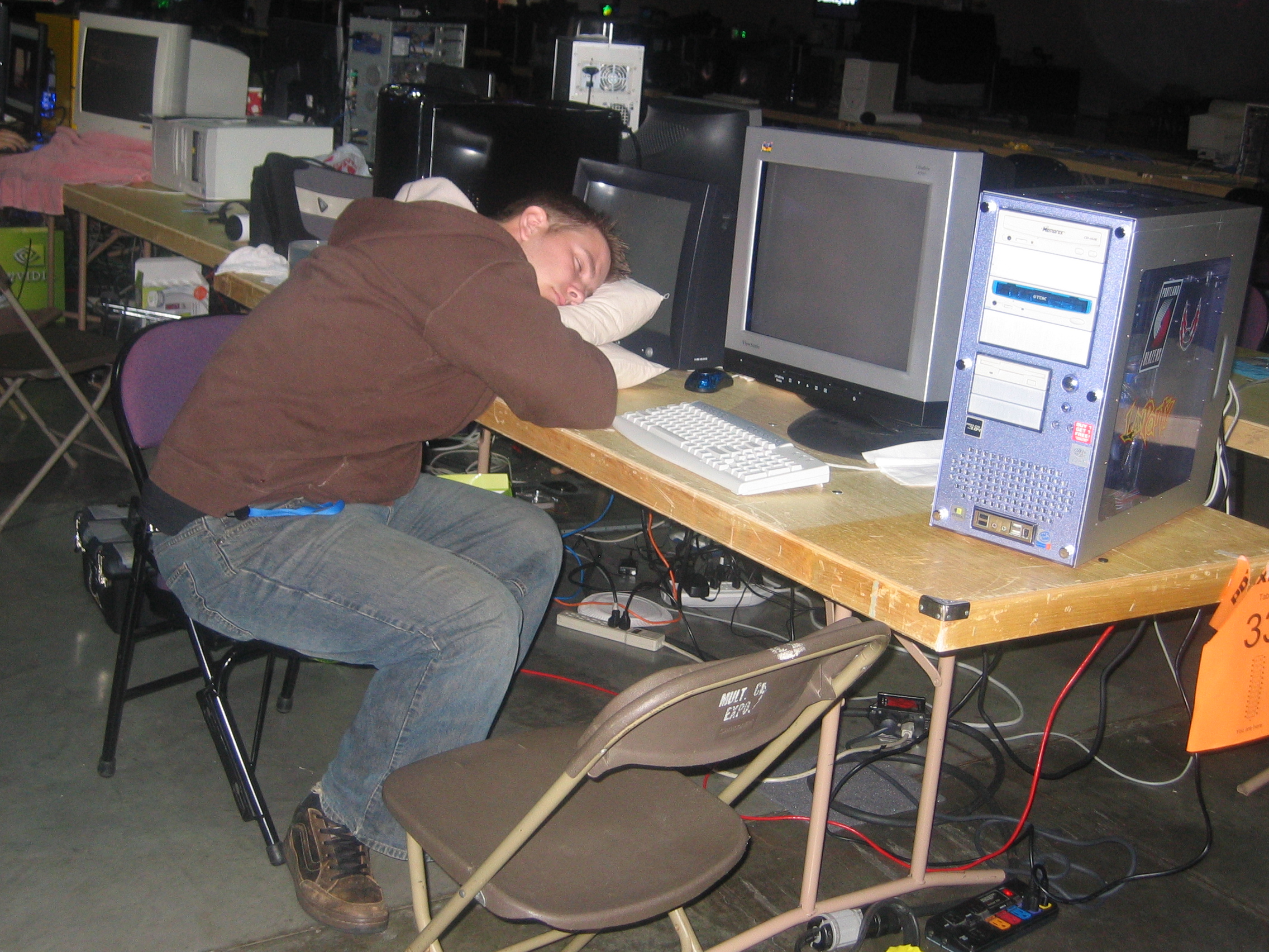 The LAN lasted for 4 days and as far as we could tell Kuyaglen never actually went to bed, although he may have gone into the hotel room maybe twice. At one point he totally passed out right in his seat at the LAN. He woke up hours later only to find out he had been literally “owned in the face”. Someone had come and drawn various things on his face with a black sharpie. I think they even displayed this on the huge projector screen at one point. We don't know who exactly did it, but I suspect the guys from the wKa clan.