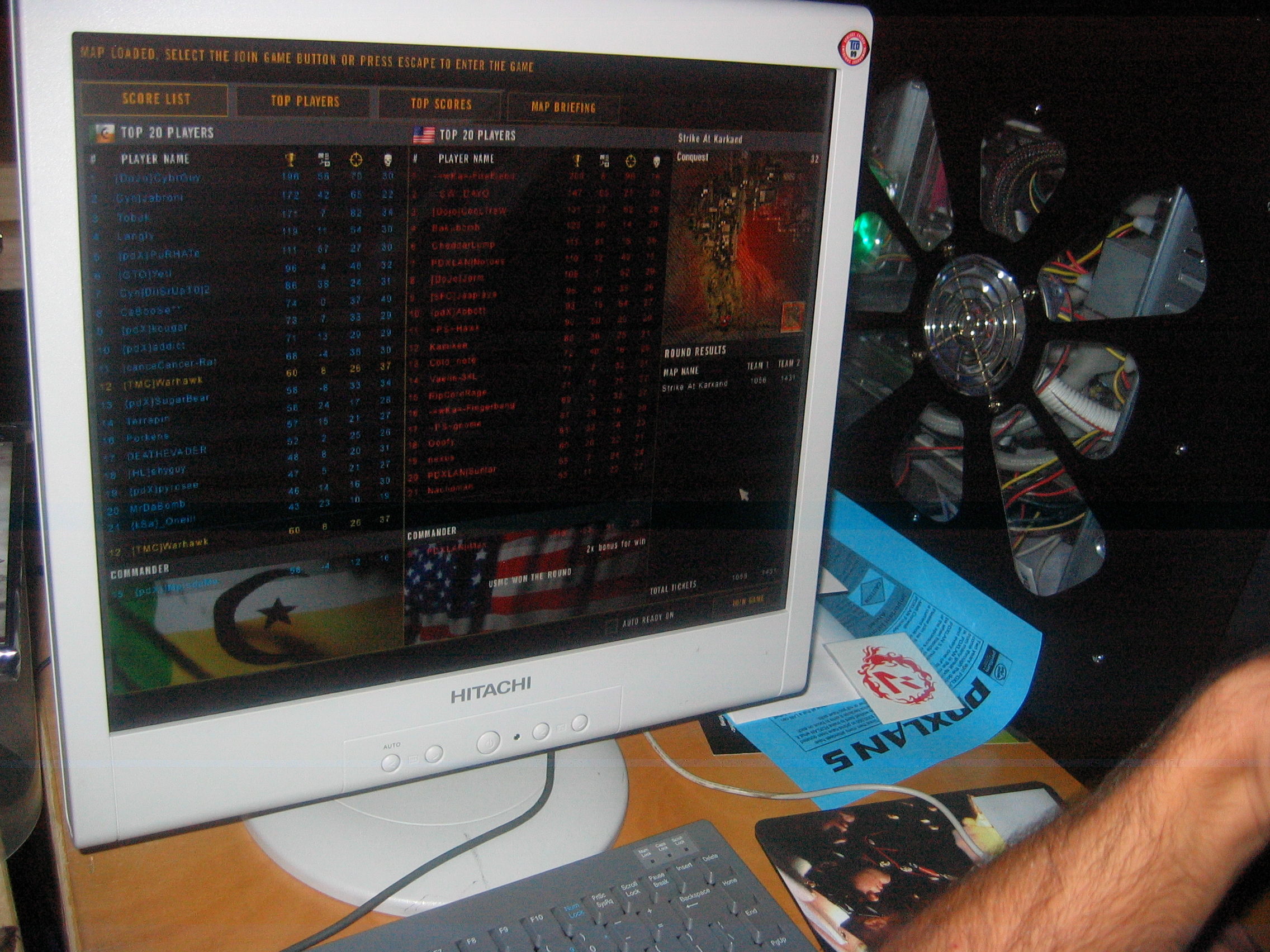 Speaking of the different clans. There were several world class clans in attendance. The top Battlefield 2 teams in the world were there. The table across from us had team Enigma, which flew in from all over the country to be there. They were a good team, but they got owned by TFS, which also flew in from all over the country to be there. TFS was then owned by team Paradigm Shift, who then went on to own wKa in the finals. TMC pretty much just said "screw that!" and stayed in bed and slept in on that day. That's how we roll!