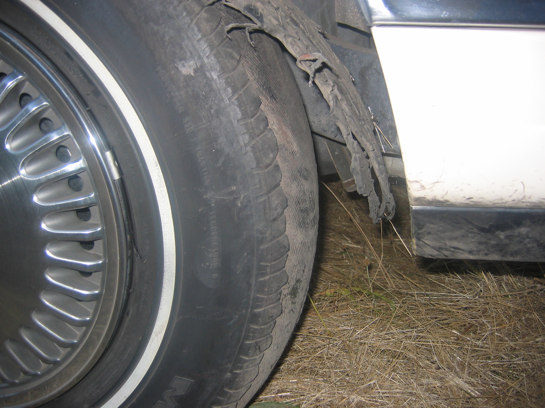 The event was a lot of fun, and when it was done we packed up and headed back down the road for the long and arduous ride back. I was soundly asleep on the couch-like seat in the back when I was woken by a terrible flapping sound, as the car bucked up and down. We quickly pulled over to find that the rubber tread had actually begun to peel right off of one of the tires. Apparently these tires had not been changed in quite some time.
