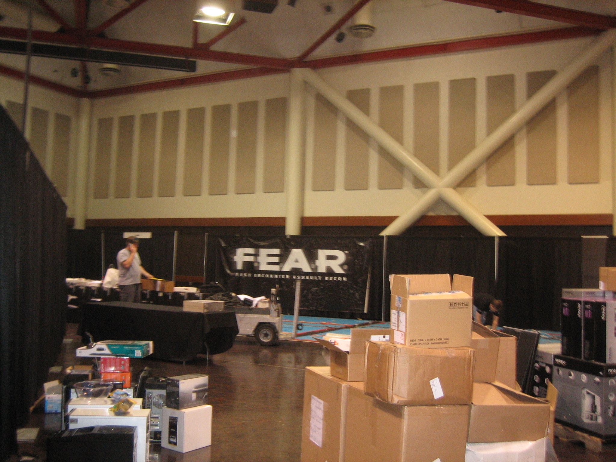 A large lanparty like this couldn't be possible without the help of the sponsors. The sponsors help pay for things like, power, space and advertising. They also provided prizes and "shwag" to the attendees. In fact, for the $30 price, every attendee got a copy of "Armored Fury", "F.E.A.R. Extraction Point" and "Prey". A gaming value of over $80. There were t-shirts, keychains, mousepads, balls, rumbling foam grenades, pens, case badges and company promotional items galore. The retail value of prizes/shwag that the sponsors gave out tallied to over $70,000.