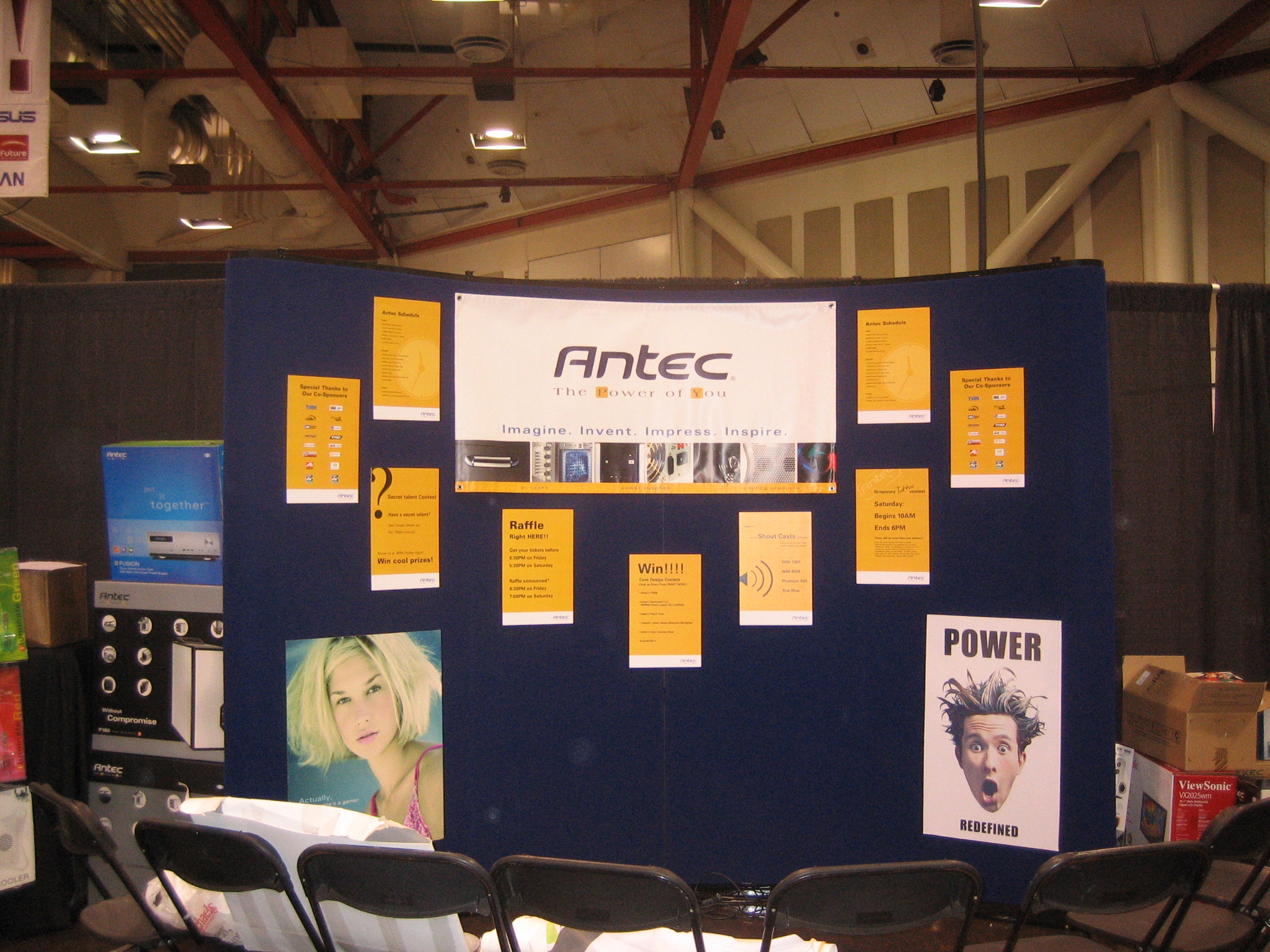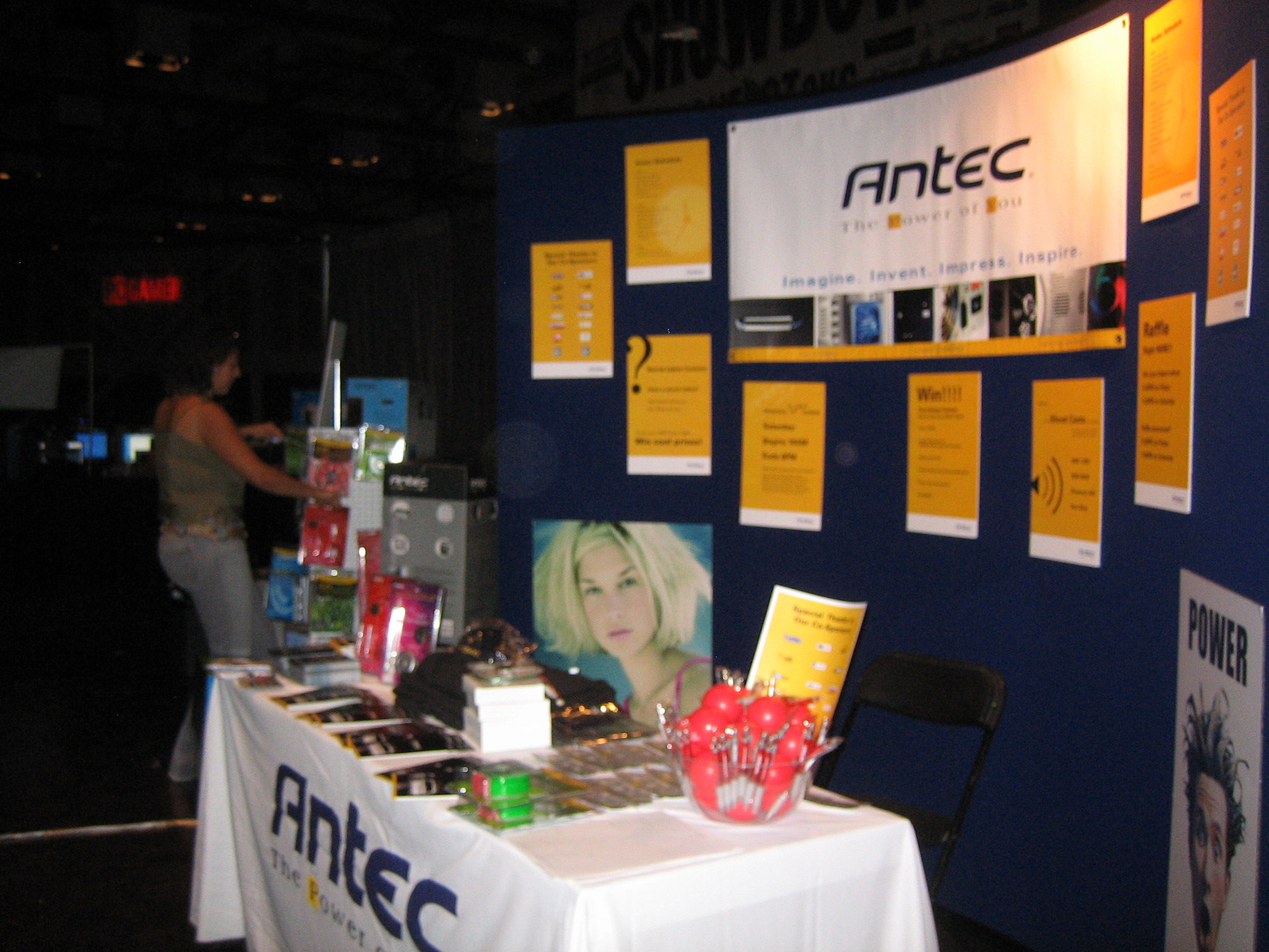 Not only did Antec have one of the largest booths at the event, but Antec products were also present in many other booths at the event. The reason for this was that we made sure to create partnerships with the other companies we knew were going to be at the show. We made agreements with them beforehand to trade products with them. This meant that not only did we get to use and give away products from our partners, but it also meant that nearly every raffle and competition at the LAN featured an Antec prize. This proved to be an excellent way to have our name constantly mentioned in other booths as well as over the PA system when prizes were announced.