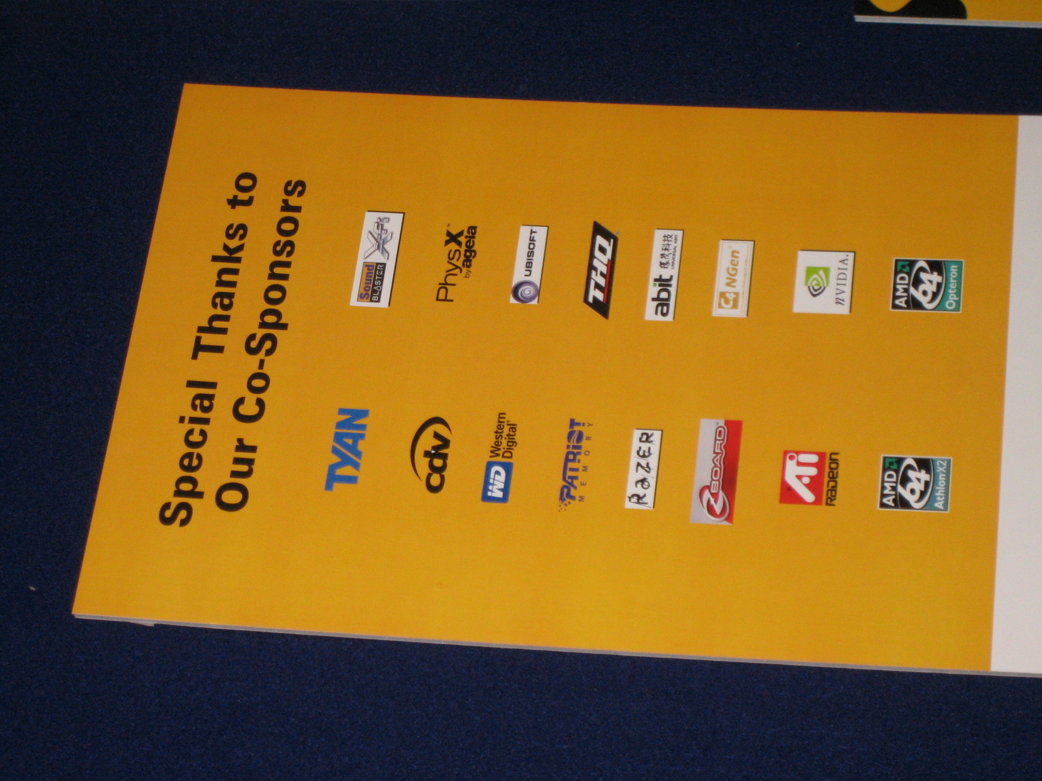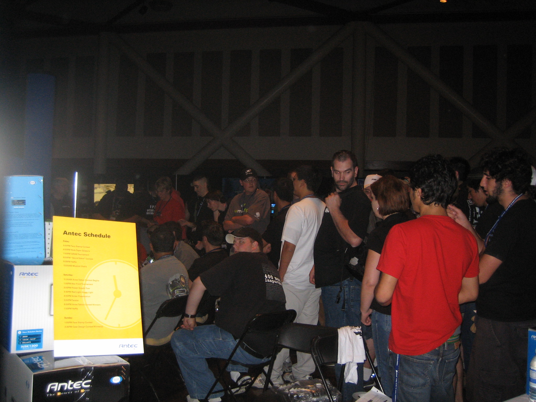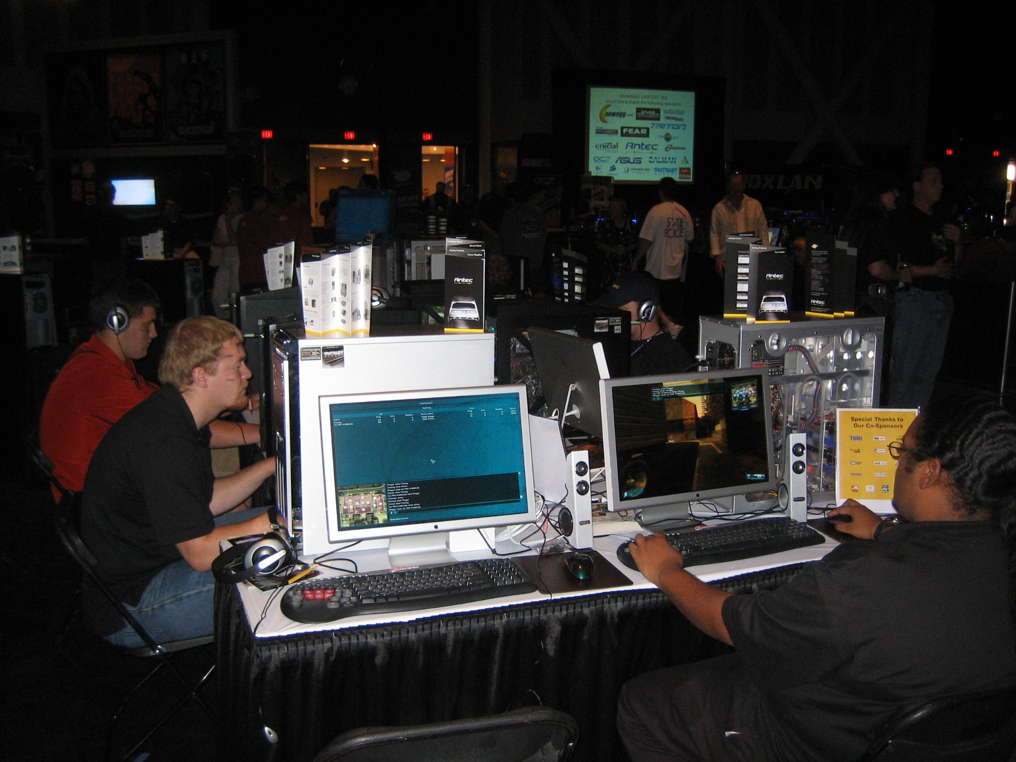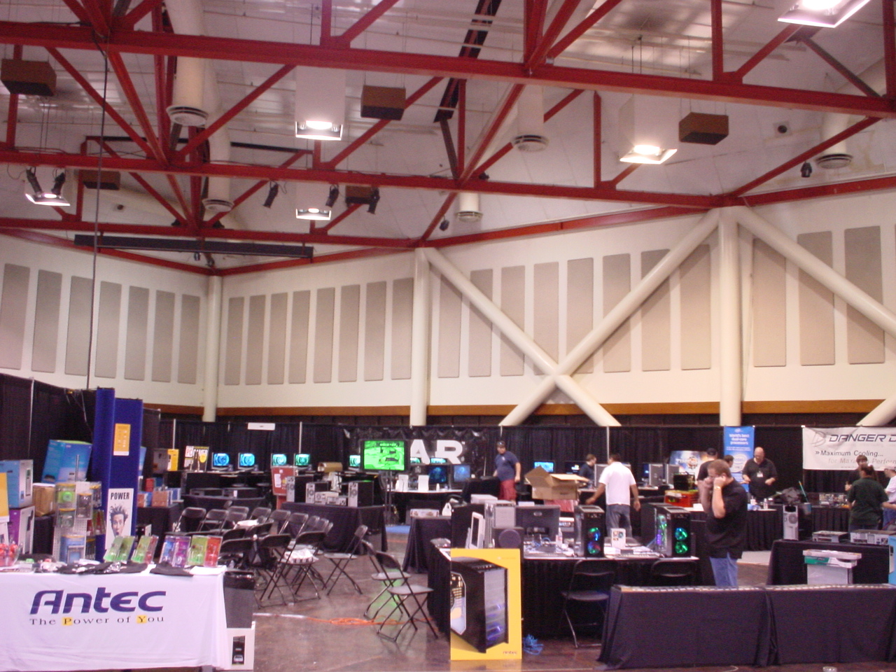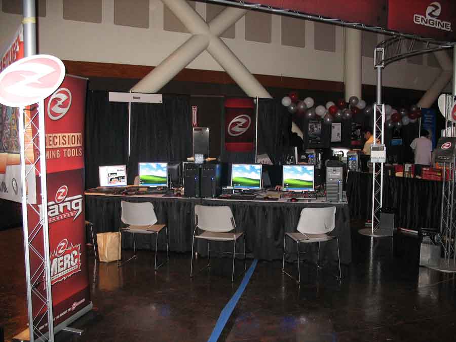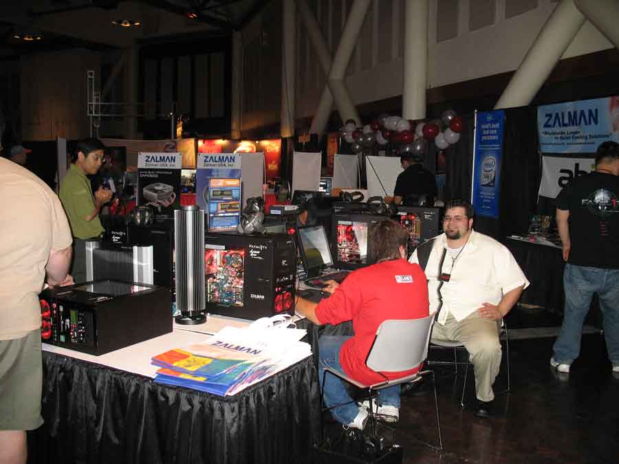 Sponsor booths were setup for Antec, Intel, THQ, Abit, Patriot, Ageia, Crucial, OCZ, Killer NIC, ATI, Newegg, Zalman, Corsair, ASA Computers, Danger Den, ASUS, Zboard. Sponsors showed off their latest hardware and software as well as give attendees a chance to win cool prizes.