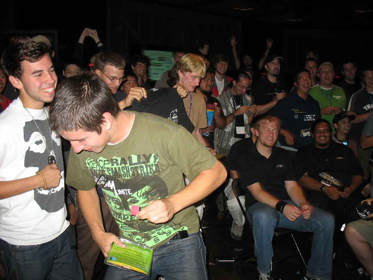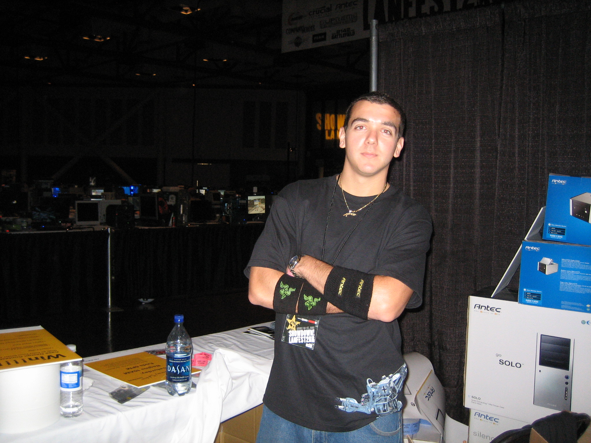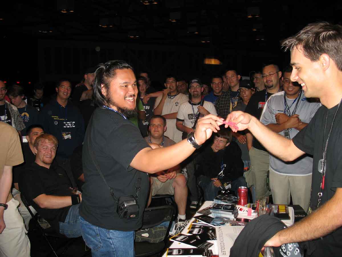 Of course, running these contests and promotions also meant that the event was more demanding on those of us staffing the booth. Since Antec was perpetually low budget and understaffed, I had to get creative in finding helpers to assist with the various activities at the booth. To accomplish this, I recruited some TMC members as Antec volunteers to help me run the booth activities. JonDom’s proved to be especially effective as his loud booming voice became a human bullhorn that was extremely helpful in coordinating contestants for the contests, calling out twister colors, or musical chairs rules. The TMC members that volunteered would then be rewarded with free product for their services. It was an arrangement that was mutually beneficial for both groups and using TMC members as Antec volunteers became a regular thing at LAN events.