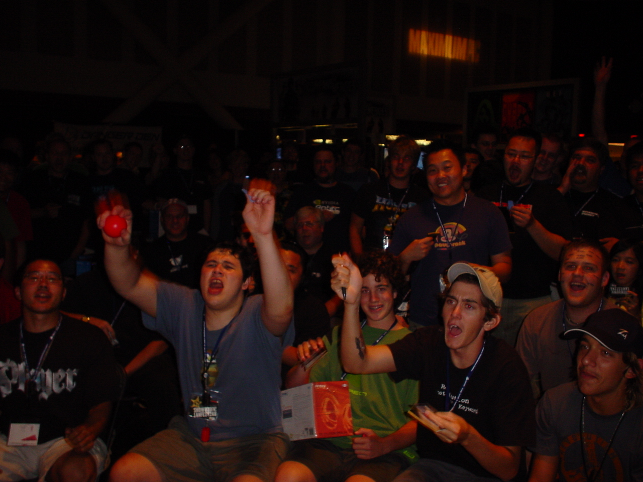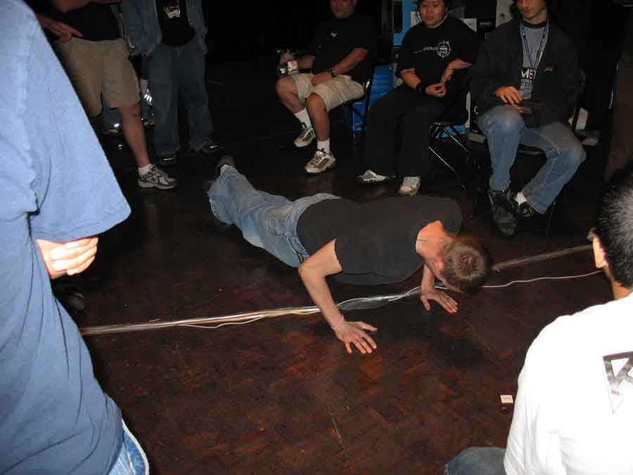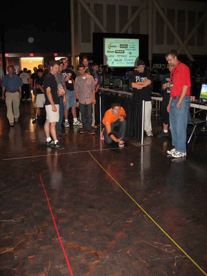 Following the DangerDen thing was Warhawk with the Antec PSU toss. People were almost killed and everybody cheered. The Crucial guy won and Mameman took 3rd. Crucial guy then held the 100v100 dodgeball contest. CSI Little Asian Kids had the highest kill/death ratio. Metalslug had missed a golden opportunity, missed was left vaulnerable but was still able to escape some (as he taunted in the heat of battle) bitch.