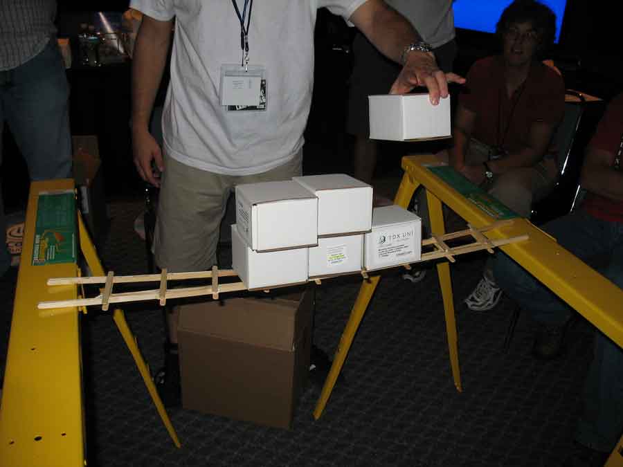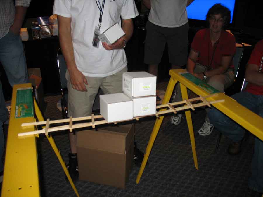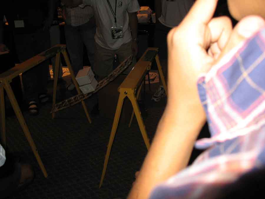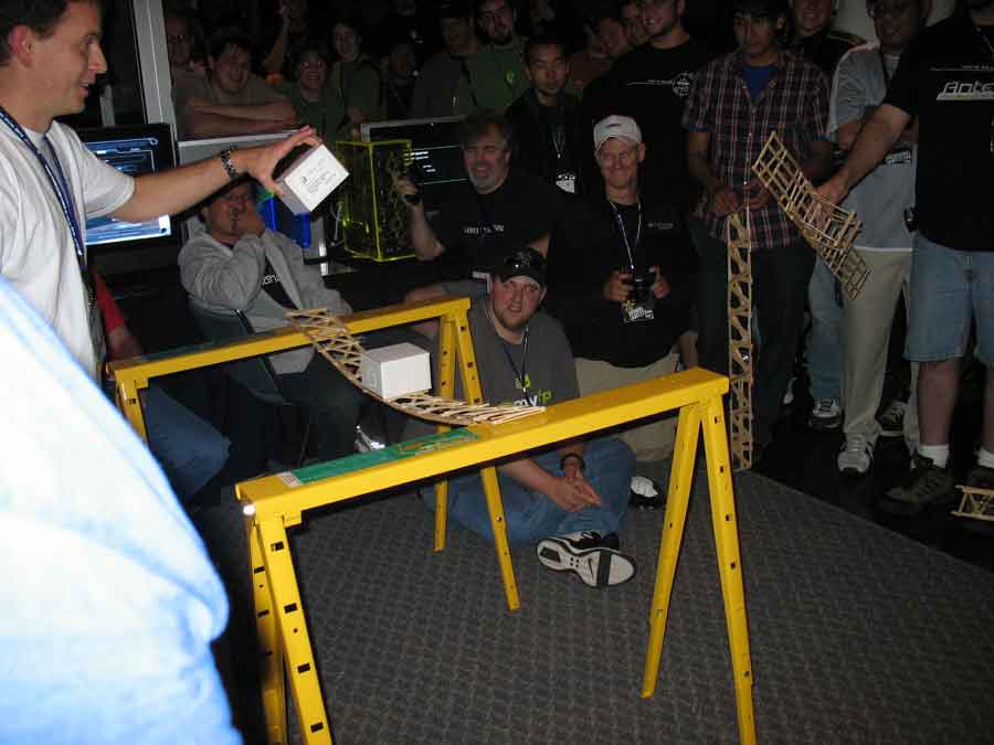 Back at the BYOC I took some pictures of the booths and sat in on the "Supreme CommanderJ" presentations, while Evilkickass won a 7950 GX2 for filling out an Nvidia survey. Dima and KraZ broke out the Dremels for some popcicle bridge pwnage. All their work payed off in the end with them winning a t-shirt. At least Dima won a 1st place at a Paperairplane contest and won an Antec case.