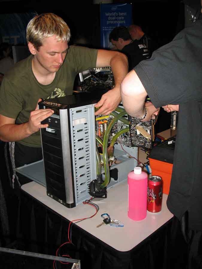 Sunday morning was just getting in on as many sponsor raffles as you can and playing GRAW on the free-to-play Antec gaming area for a while with Ginger|R|. KraZ got into the Intel overclocking presentation and again won an Intel Extreme Edition proc and mobo (3.7Ghz and 955 chipset). The Abit guys came around and awarded me with a cool Abit watch because I displayed my Abit mobo on top of my computer.