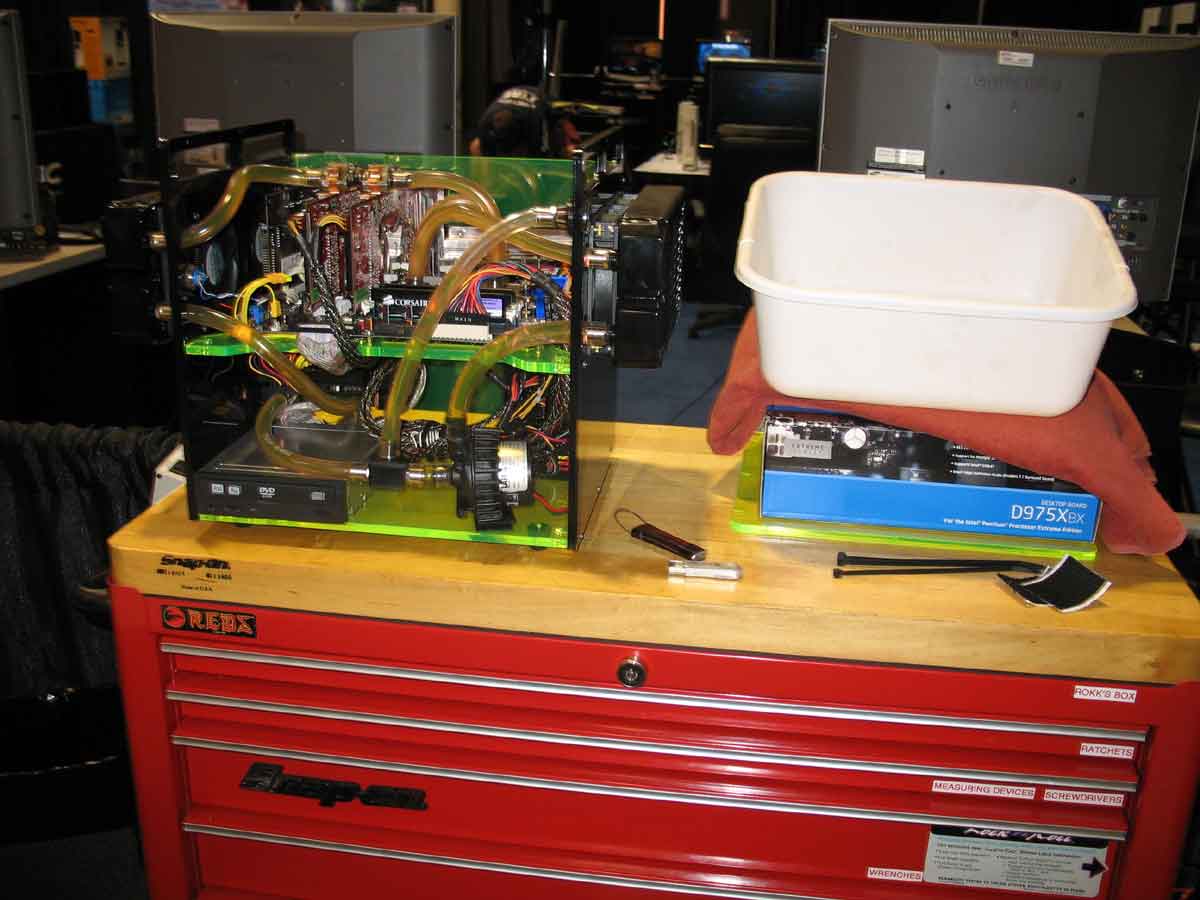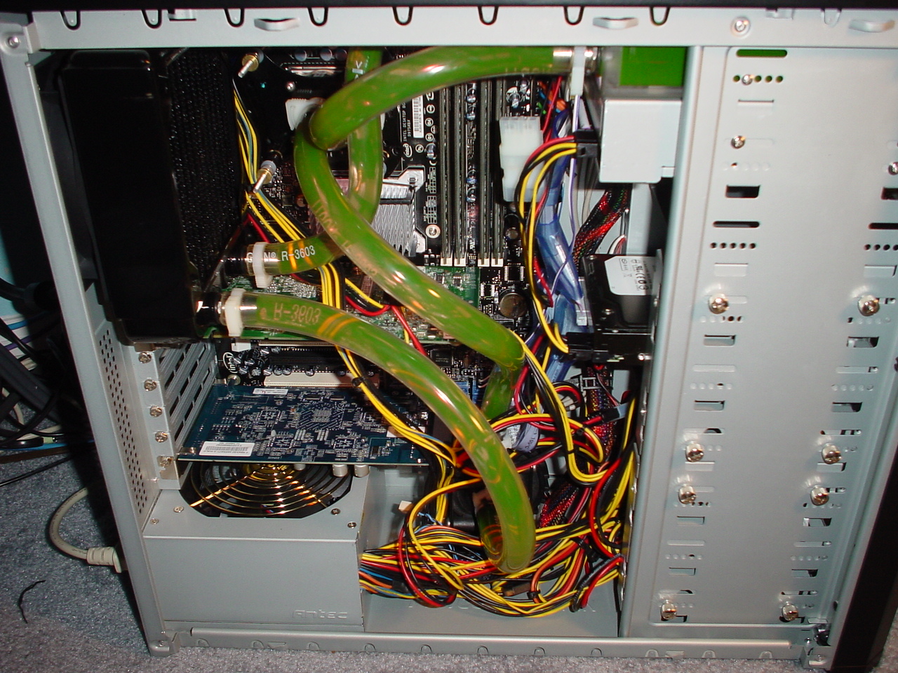 One last side note on the Antec Nine Hundred case: At this event I ended up winning a Danger Den watercooling kit in a raffle. I was also given one of the empty prototype Nine Hundred cases. Immediately after the LAN I went with QueMine and Raven, to Raven’s home workshop and we installed a new PC and the watercooling kit. At this time PC watercooling was still a very niche hobby market and not many people were doing it, and personally this would be my very first watercooled build. I realized that since the Nine Hundred case was not yet on the market or available to the public, we had just become the first people on the planet to build a water cooling system in one of these cases. +1 cool points for TMC.
