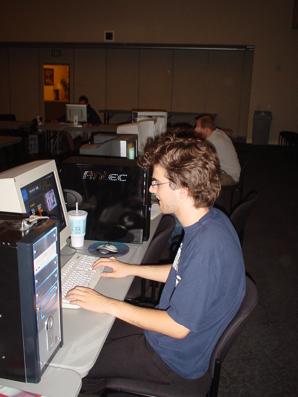 The LAN staff's jaws dropped as I lugged in the massive amounts of equipment, and they were impressed yet again, when Kraz arrived with his Uber Rackmount Server with 50 gigs of filesharing goodness. It was clear that Kraz and I were definately the LAN verterans amoung this group, as most of them were painfully new to a lot of LAN protocol, that most of us take for granted.